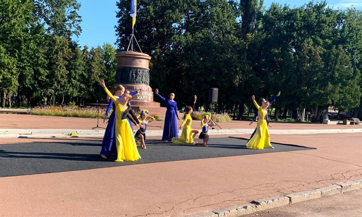 Захід почався з тематичної хореографічної композиції. Учасники зразкового колективу "Вольтаж" танцювали у костюмах кольорів українського стягу.