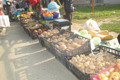 На майданчику, де торгують овочами й фруктами із власних городів, найбільше людей. Запасаються на зиму картоплею та цибулею. Активно купують перець, як гіркий так і солодкий, виноград, сливи, помідори та яблука. Часто запитують баклажани та часник. Дехто вже бере на запас для посадки на зиму.
