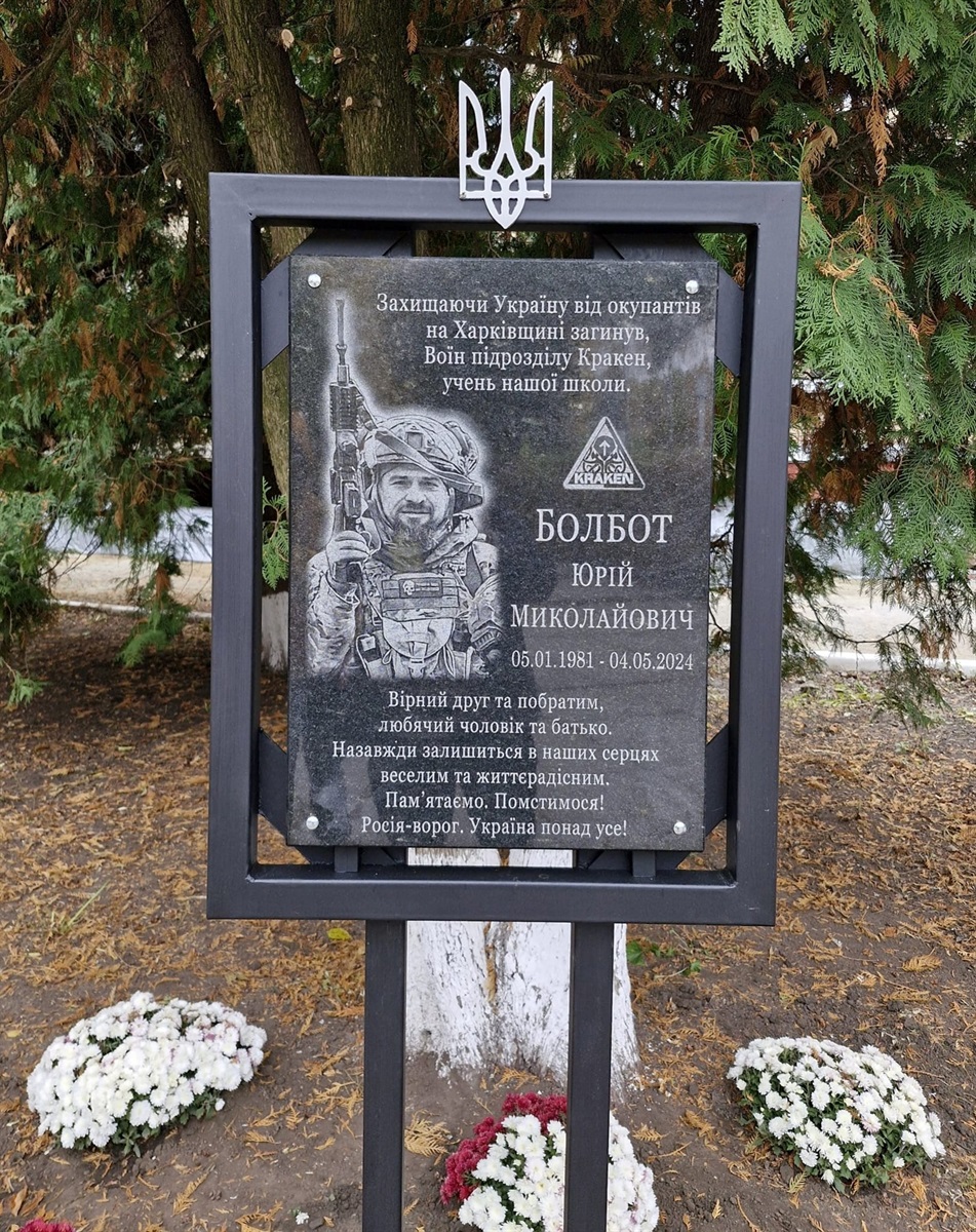 – Побратими та адміністрація школи вирішили меморіальну дошку встановити не на фасаді закладу освіти, а поруч із ліцеєм. Зняли прапор України з пам'ятної стели найрідніші Юрія Болбота – його дружина Світлана та син Ярослав. Побратими Героя також взяли участь у заході, – розповів Переяслав.City голова Ташанської громади Василь Вовчанівський.