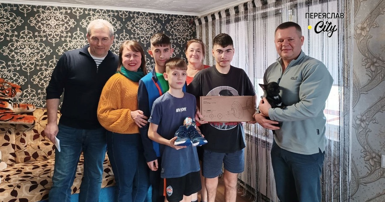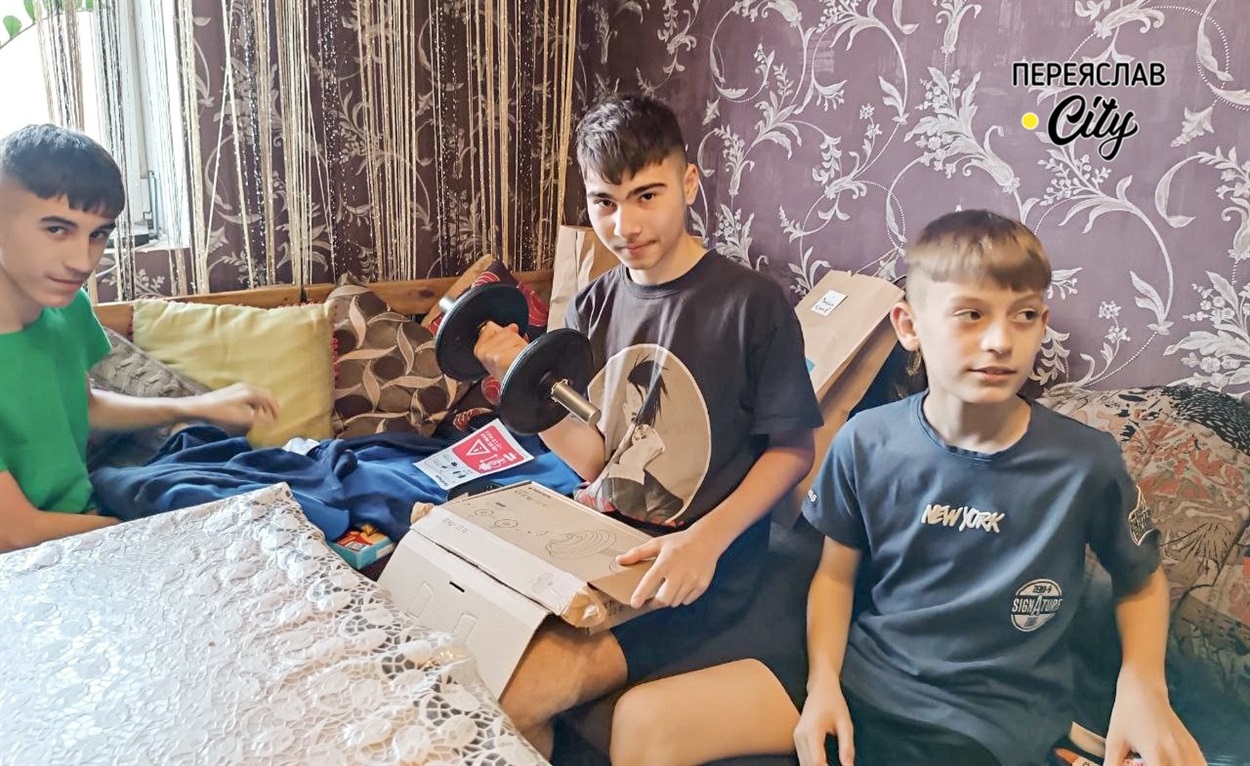 Діти, які займаються спортом, отримали спортивні костюми, кросівки, гантелі та солодощі.