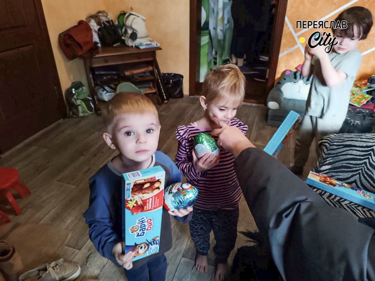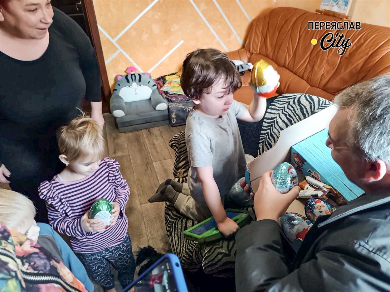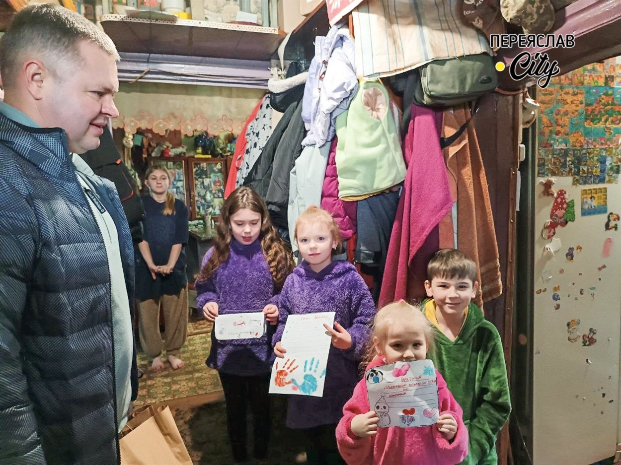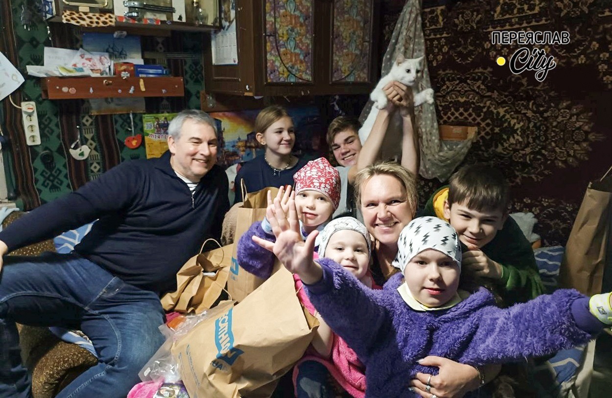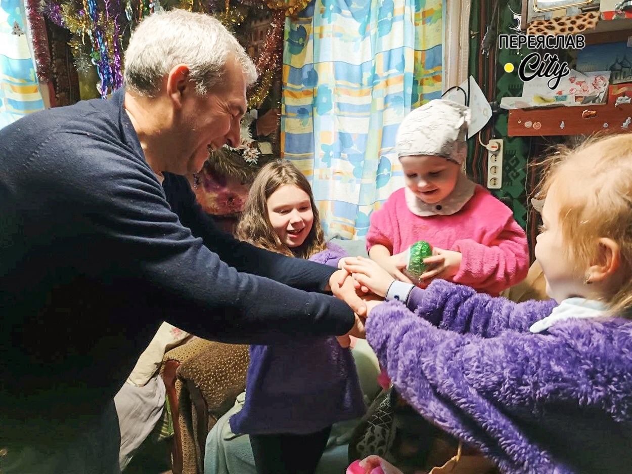 Спершу Алексіс відвідав багатодітну родину Євсеєнків у Переяславі. Діти зустріли гостя малюнками та листами до Святого Миколая. Попри мовний бар’єр, вони легко знайшли спільну мову.