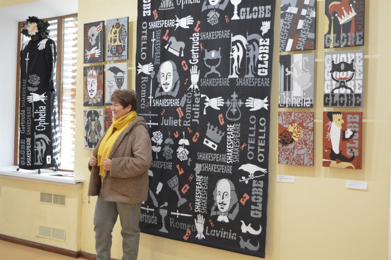 — Уперше відвідую це славетне місто, де Тарас Шевченко створив "Заповіт" і "І мертвим, і живим...", "Катерину", та інші твори. Підходячи до проєкту, прагнула концептуальності, — зазначає художниця. — Окрім ескізів костюмів, розробила унікальний рушник і спеціальний костюм для цієї виставки — "Рушник війни". Використано авторську техніку та віртуально створені трафарети. Додала й старовинний кролевецький рушник, адже такі речі завжди мали важливе місце в нашій культурі. Кожен елемент несе історію певного регіону.