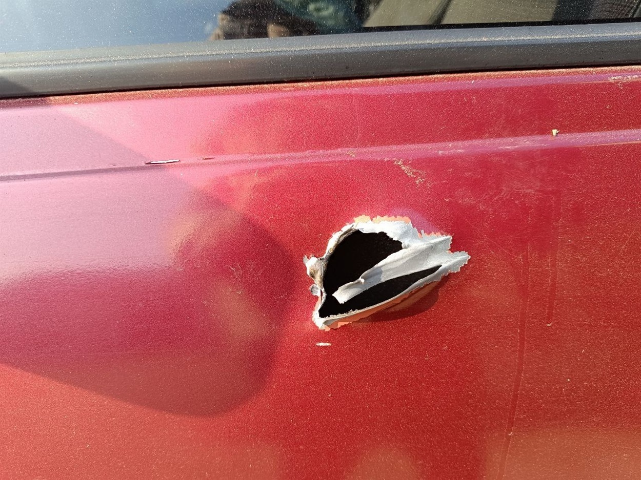 - Ушкоджень зазнав один автомобіль – уламок пробив його наскрізь по діагоналі.