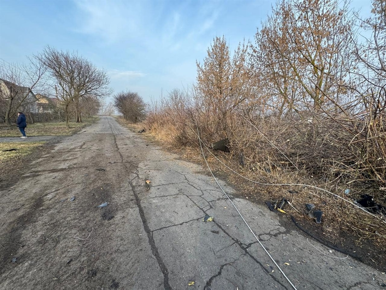 Ще вночі приїжджали поліція і ДСНС, бо відразу після падіння дрону виникла пожежа, зайнялася лінія електропередач.