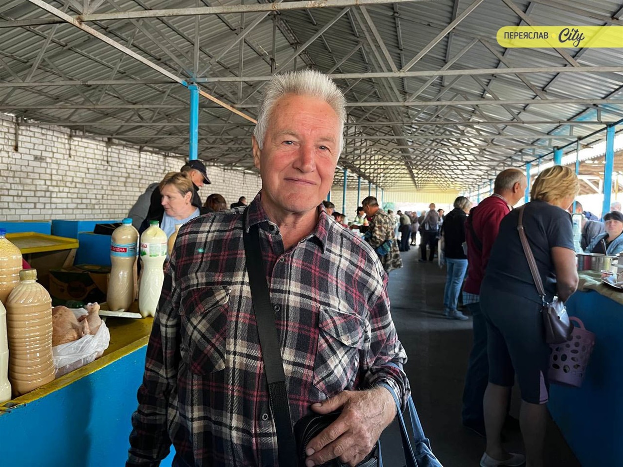 – Сподобалася мені курочка у цієї продавчині, то й придбав. Її ціна – 170 гривень. Я тут буваю кожної неділі, – розповідає Володимир. Чоловік уже зробив закупи і готується йти. – Я купив молочко, творожок, м'яско і сальце. Овочі та фрукти не брав, бо є все своє домашнє.
