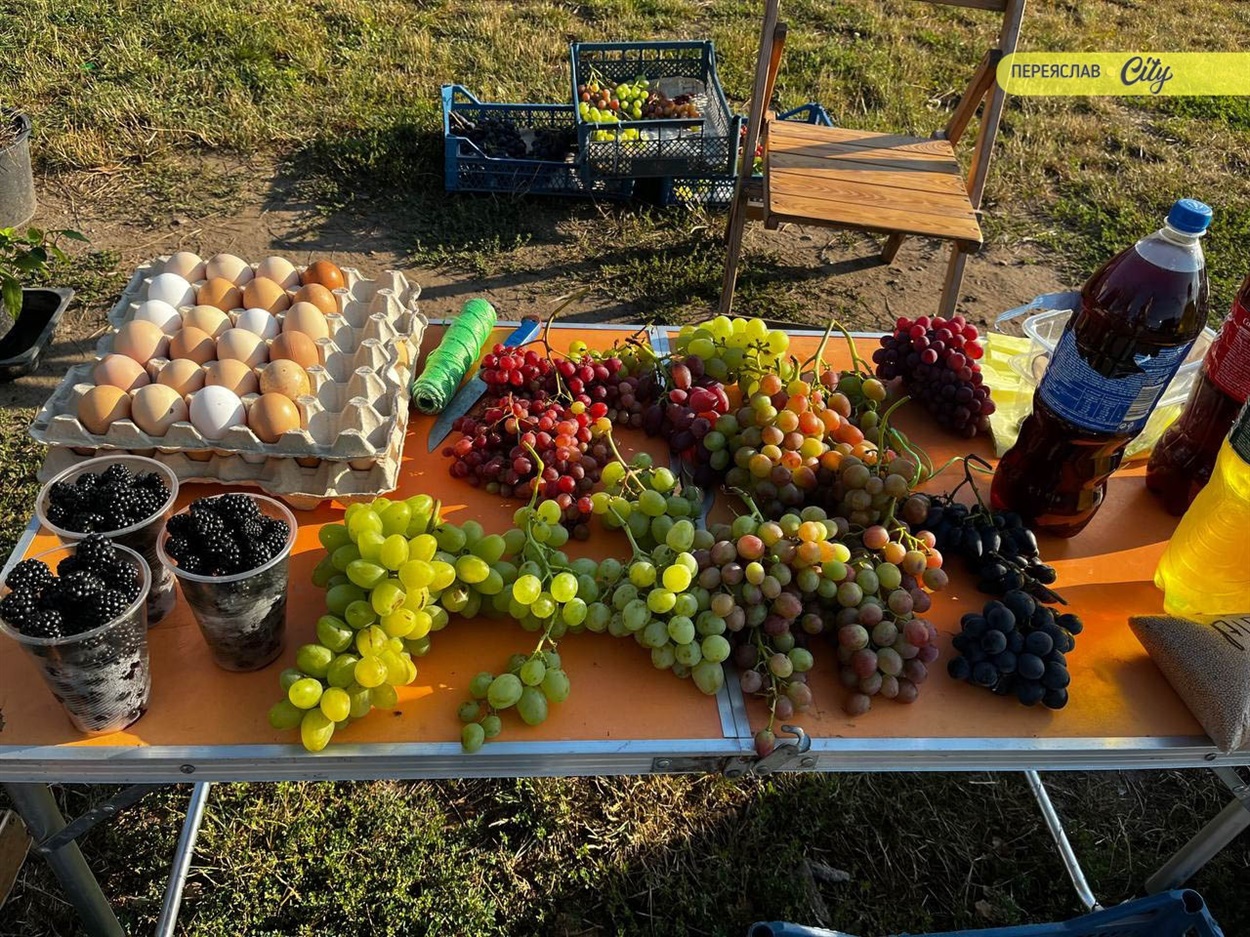 Найбільше серед овочів і фруктів продавці пропонують виноград. З Ташані його продавали по 150 гривень за кілограм, були різних сортів. Продавець поділився, що має їх аж 200. Переяславський виноград коштував 110–120 гривень.
