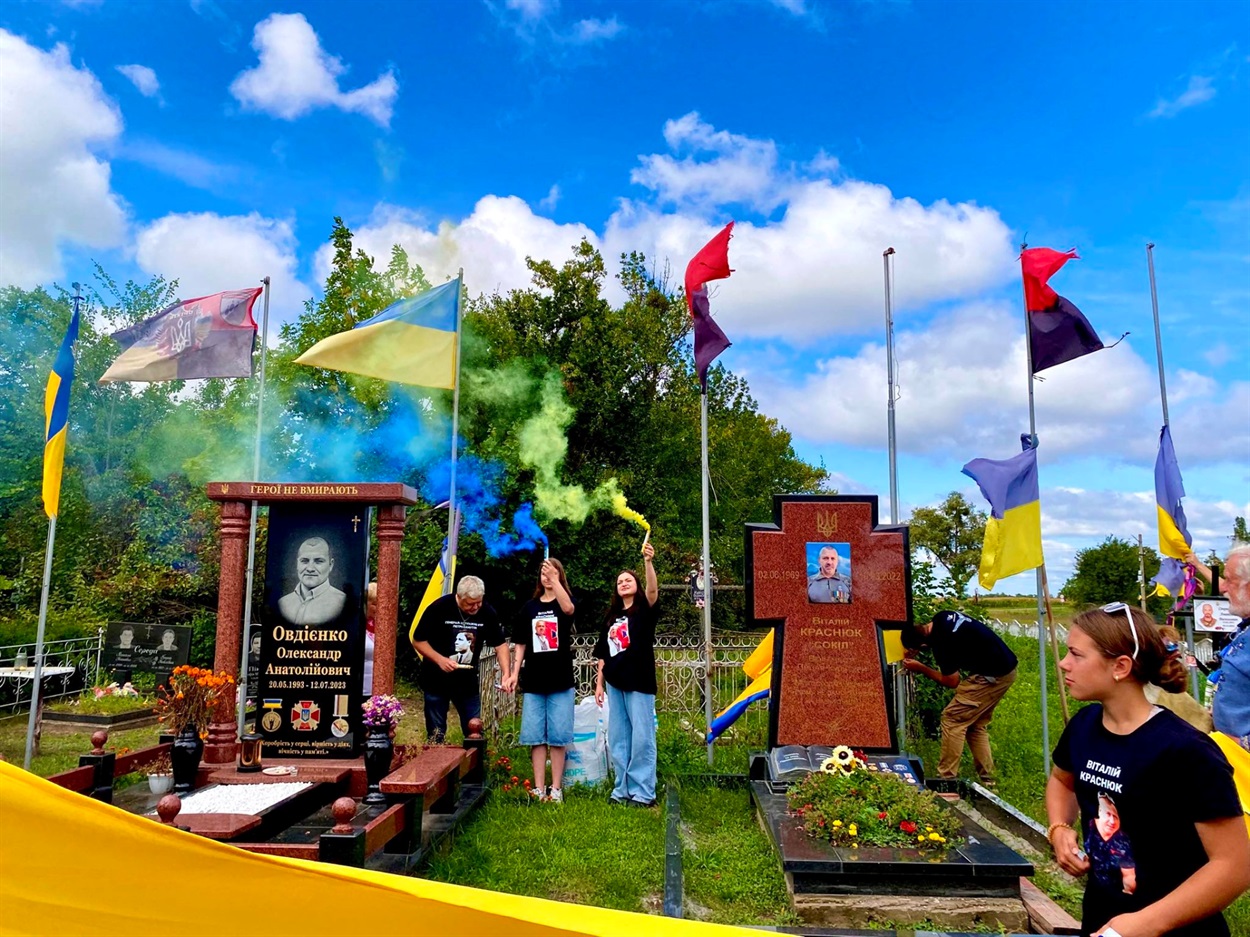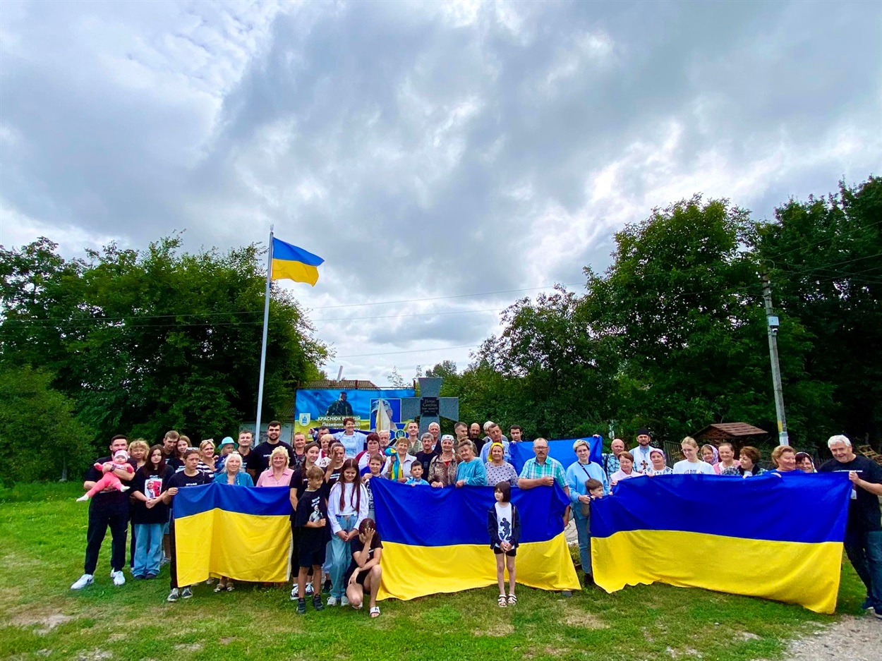 Зазвучала проповідь священника Василя Думанського. З промовою виступив Микола Кужільний: "Легендарна особистість нашого села, в руках у нього був прапор, якому більш ніж 35 років, пошитий із наволочки і піднятий у далекі 90-ті роки, коли за такі речі можна було потрапити в немилість. Пан Микола першим це зробив на Переяславщині, ми пишаємося таким земляком, який зберіг цю реліквію нашої державності до сьогодення", – зазначили на сторінці.