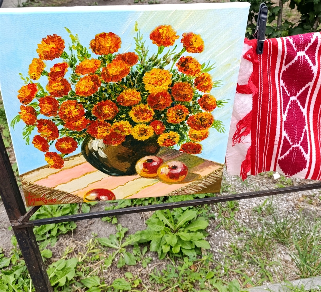 Окремий аукціон з продажу картини "Ромашечки" Галина Глушко продовжує вже онлайн.