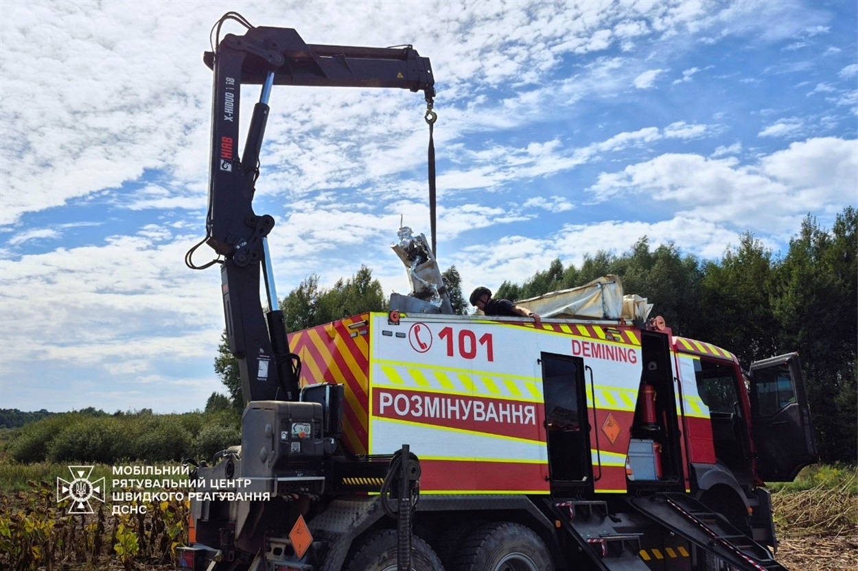 До місця виклику прибула піротехнічна група Мобільного рятувального центру швидкого реагування ДСНС України. Фахівці за допомогою піротехнічної машини важкого типу вилучили небезпечний предмет.