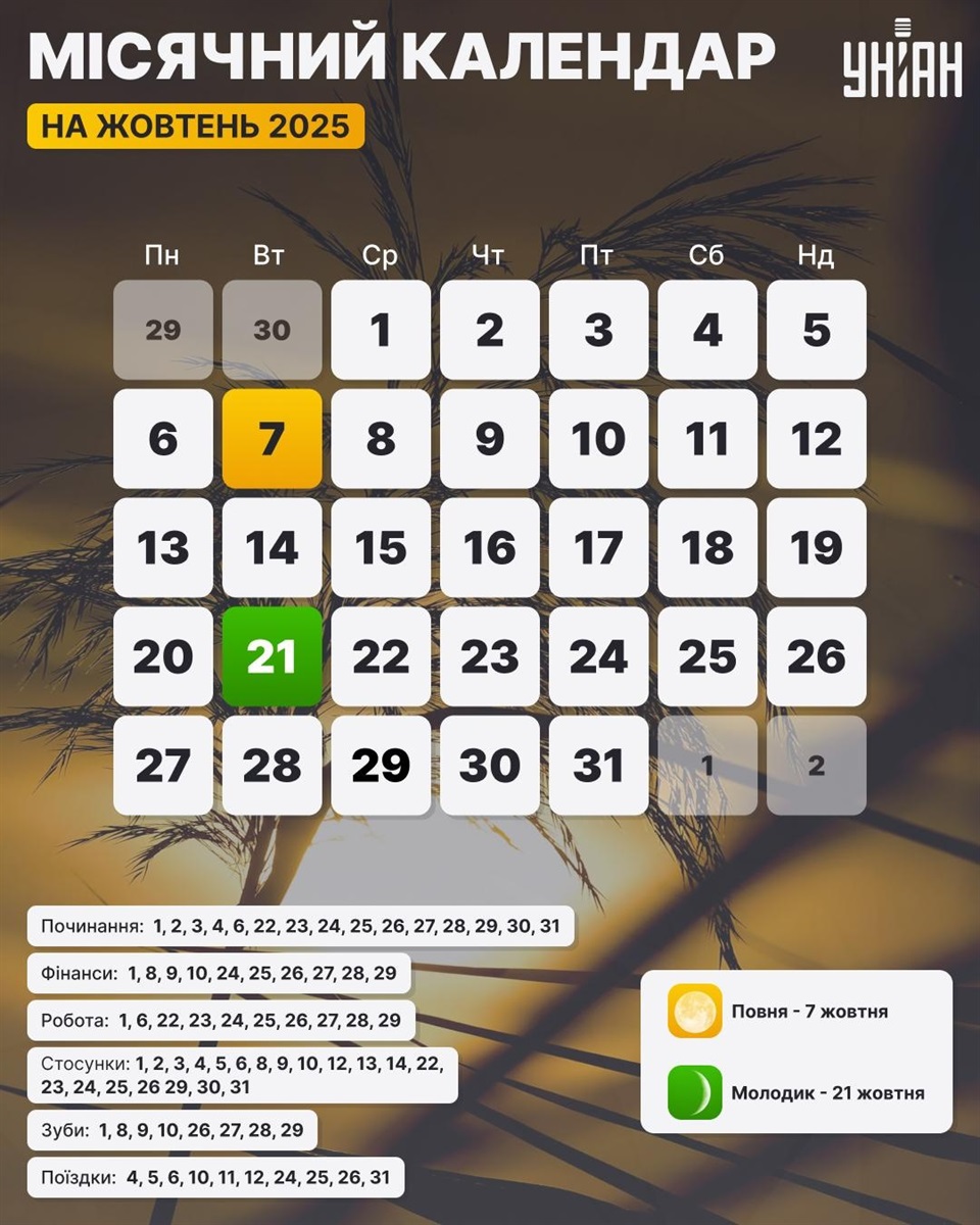 - 7 жовтня – Повня. Ризик необдуманих рішень і конфліктів.