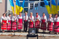 Софія Леонова разом з народними аматорськими ансамблями української пісні "Мальви" та "Червона калина" виконують пісню "Встаньмо, браття-українці"