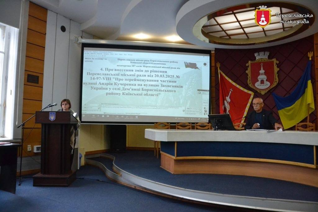 Також сесія погодила зміни до попереднього рішення від 20 березня 2025 "Про перейменування частини вулиці Андрія Кучеренка на вулицю Захисників України у селі Дем'янці".