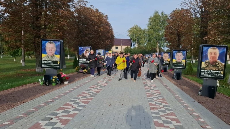 До кожного портрета лягли осінні квіти. Люди схиляли голови у вдячності й молитві.