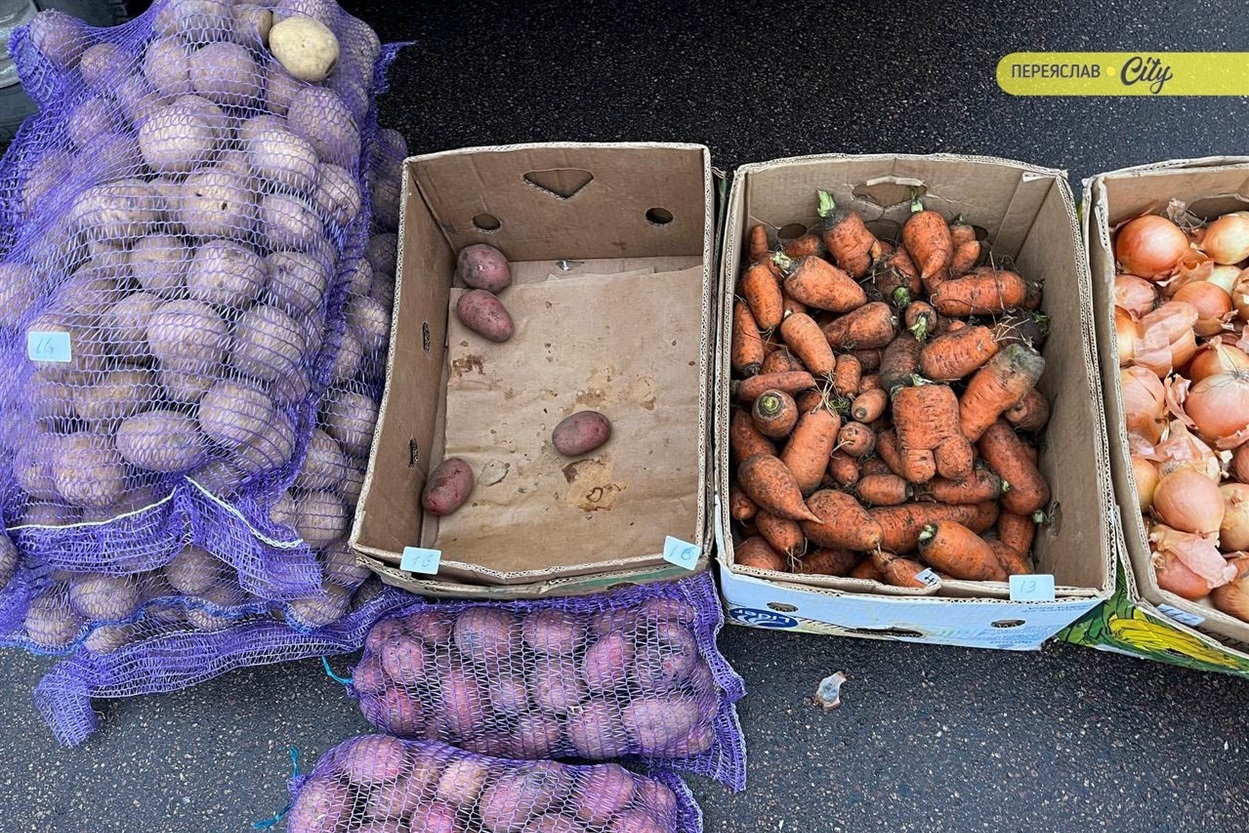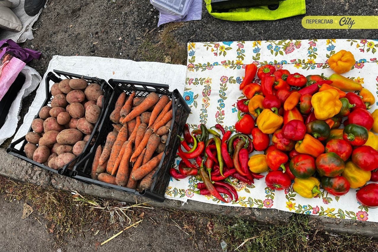 На торги вивезли багато картоплі, від 10 до 25 гривень за кіло – залежно від сорту та розміру. Ще трішки залишилося помідорів: продають по 40-60 гривень за кіло, але можна знайти і по 30-35.