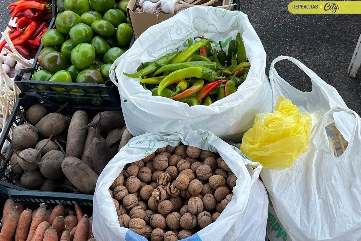 Сьогодні вранці, 5 жовтня, панувала похмура погода з дрібним дощем. На базарі почали продавати грецькі горіхи, за які оптовики платять удвічі дорожче ніж минулого року. Попитом користуються фруктові дерева та кущі – почався сезон для осінньої висадки. Починають продавати консервацію. М’ясо беруть мало, тож ціни на нього навіть знижують. Зате молочні продукти, риба та овочі залишаються на стабільних позиціях. Що і за скільки продавали – розповідає Переяслав.City.
