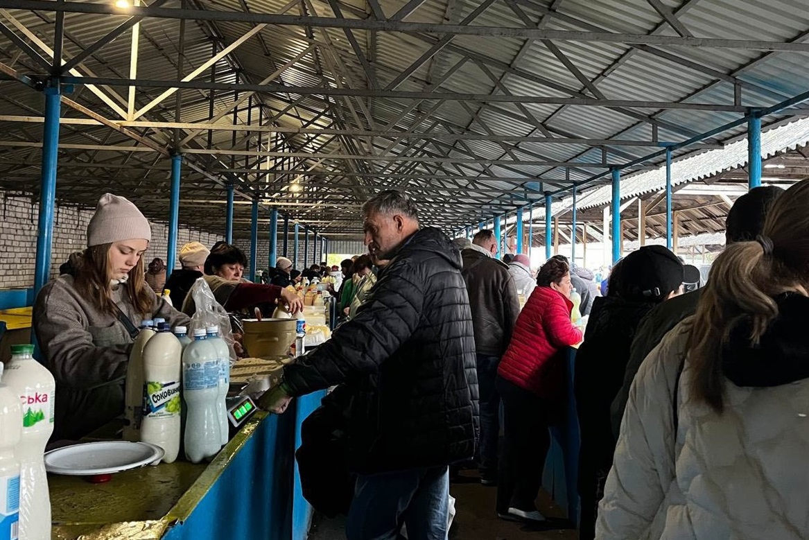 Гамір із молочного павільйону чути за кілька метрів, однак покупців там о 9:00 ранку зібралося небагато, і торги проходили не надто жваво. Я трохи зніяковіла, коли знайома продавчиня пенсійного віку сказала, що наразі не продає "молочку", бо "в декреті". Побачивши моє здивоване обличчя, вона усміхнулася й пояснила: "В мене корова в запуск пішла (тимчасово не дає молока, готуючись до отелу - ред.), молозиво буде у грудні".