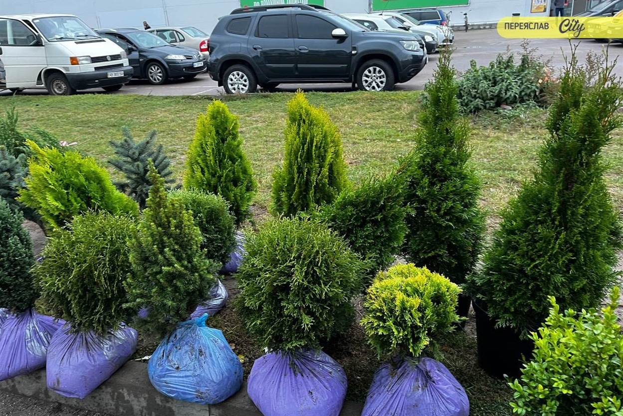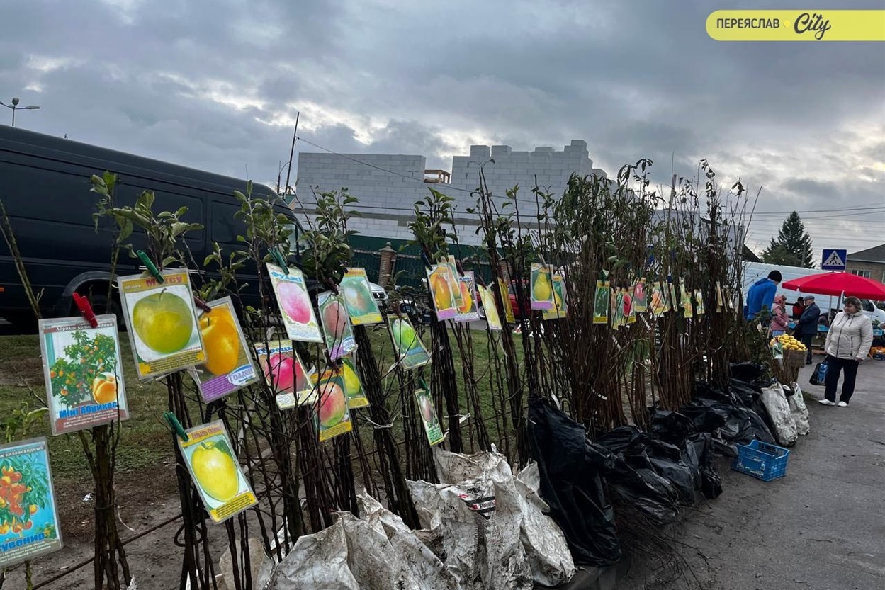 – Саджанці дерев у Переяславі ми з родиною продаємо вже понад 20 років. Привозимо не лише фруктові, а й декоративні – туї, самшит, ялівець. Туї коштують 100-400 гривень, привита блакитна ялиночка – від 1500, сосна – від 1500. Люди цікавляться, фруктові деревця розбирають швидко, – поділився продавець Павло.