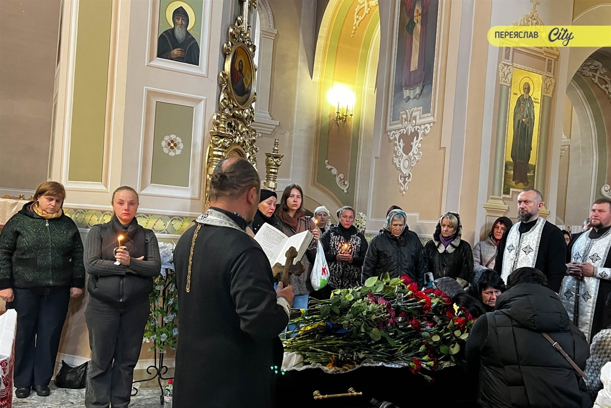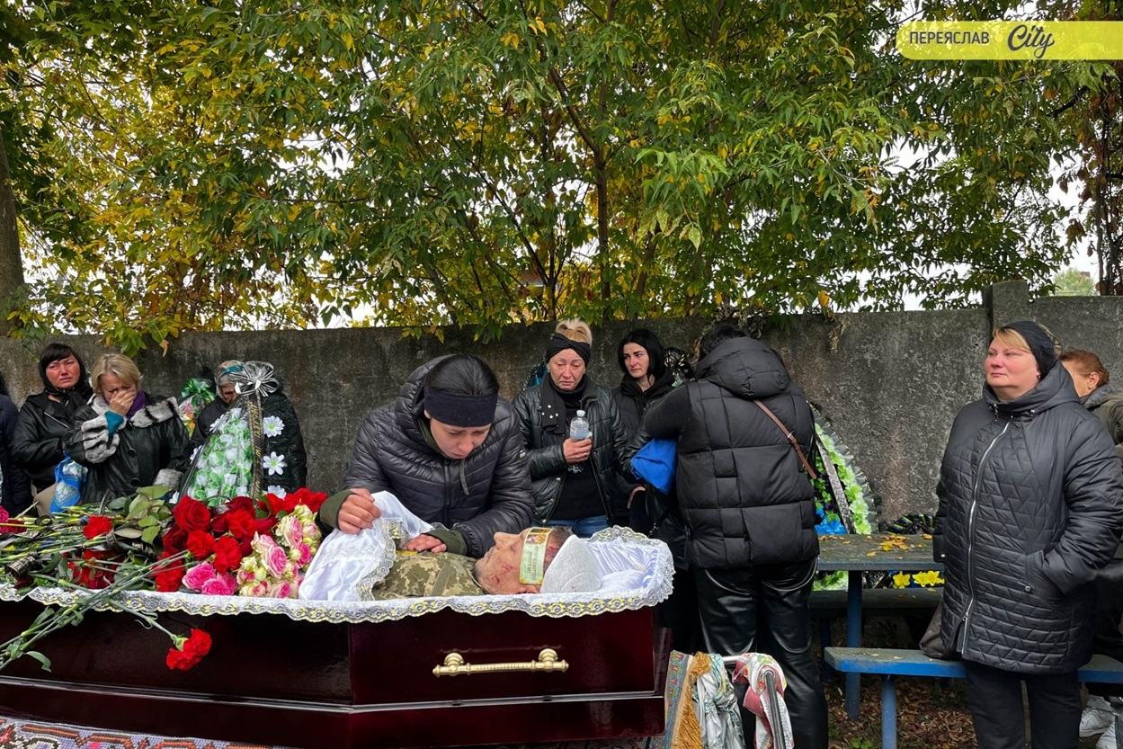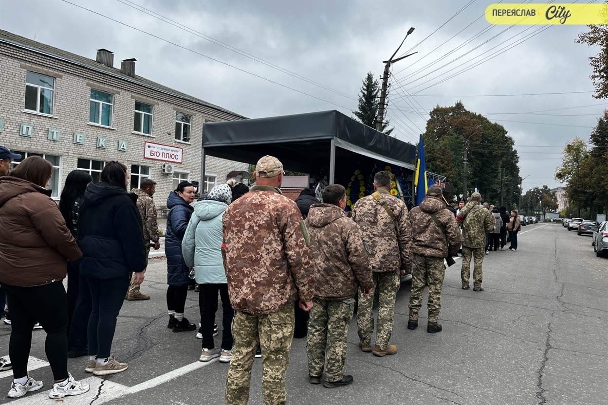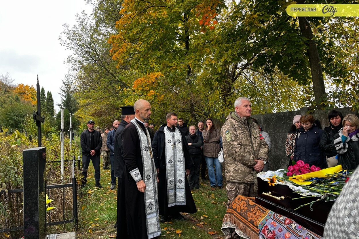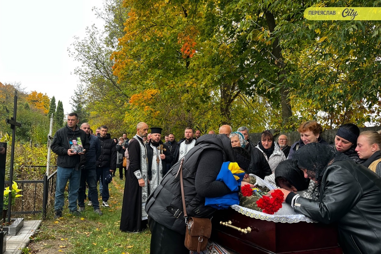 7 жовтня траурний кортеж із тілом Героя пішою ходою рушив від родинного дому на Гімназійній вулицями Переяслава до Воскресінського храму. Там присутні схилилися на коліно, коли військові переносили труну з катафалка до церкви. Зазвичай люди йдуть слідом за домовиною, але цього разу більшість рушила до храму вже після того, як труну занесли всередину.