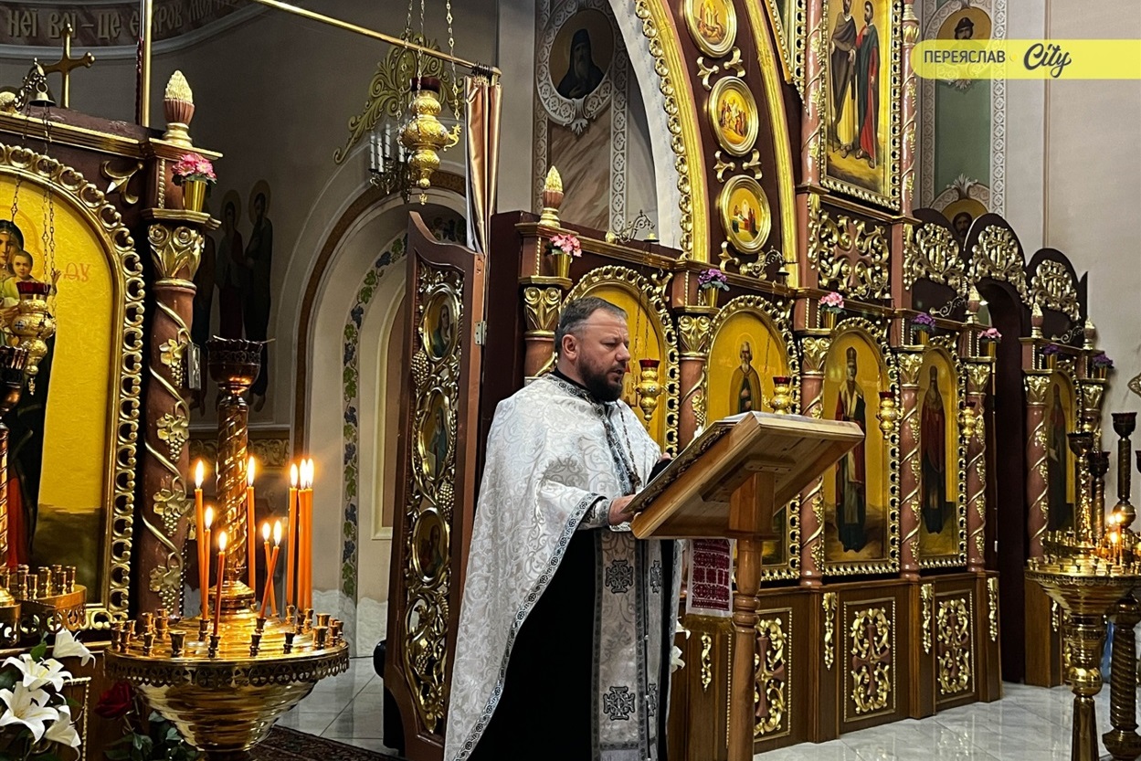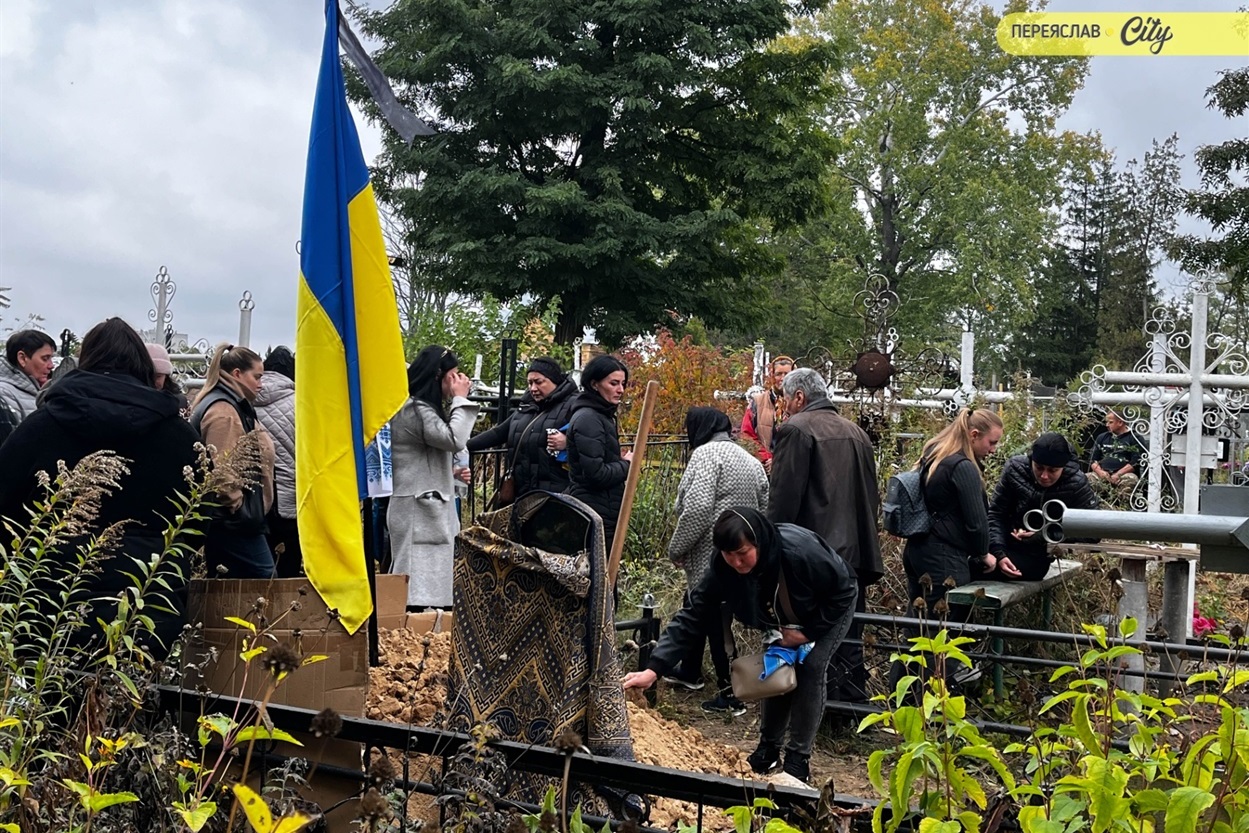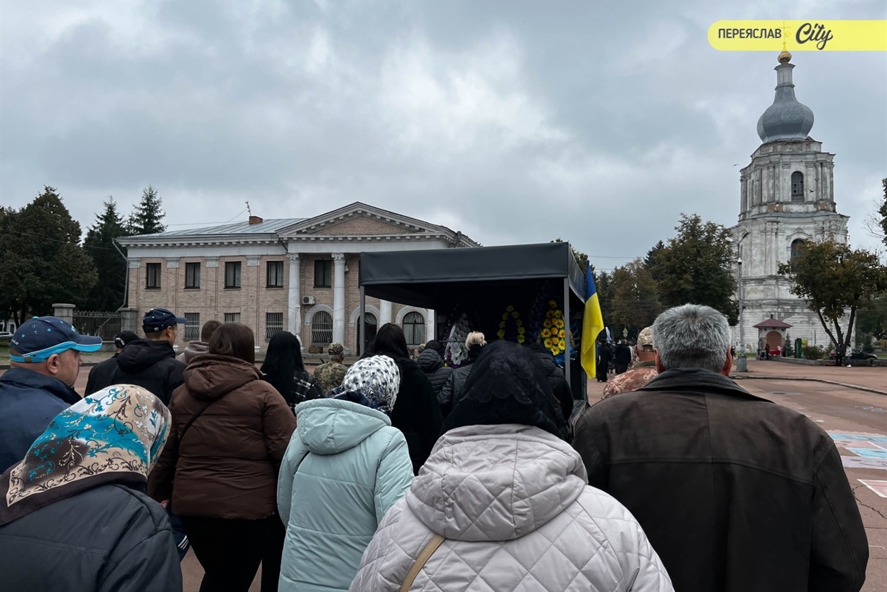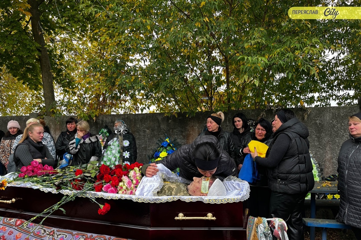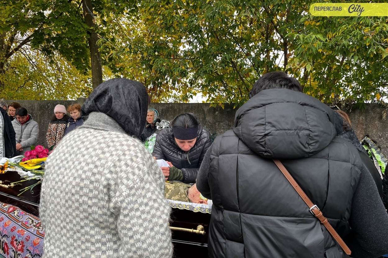 7 жовтня траурний кортеж із тілом Героя пішою ходою рушив від родинного дому на Гімназійній вулицями Переяслава до Воскресінського храму. Там присутні схилилися на коліно, коли військові переносили труну з катафалка до церкви. Зазвичай люди йдуть слідом за домовиною, але цього разу більшість рушила до храму вже після того, як труну занесли всередину.