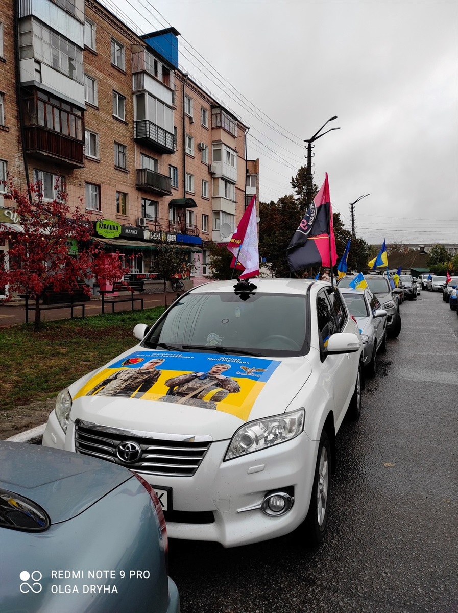 Колона з понад 80 автомобілів рушила вулицями Богдана Хмельницького – об’їзною дорогою– Золотоніським шосе – Гімназійною до Алеї Героїв. Автівки оздобили прапорами України та військових формувань, портретами загиблих, зниклих безвісти і полонених воїнів. Рух колони супроводжувала поліція.