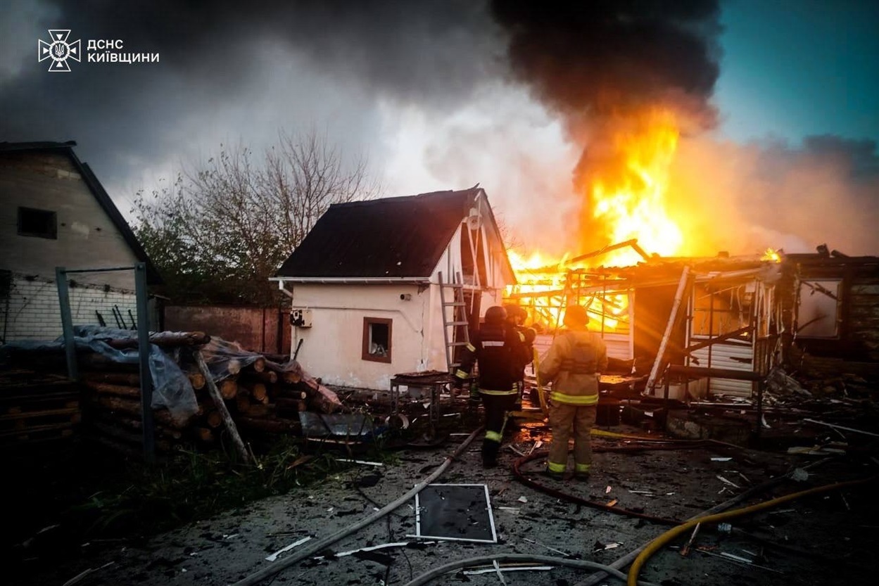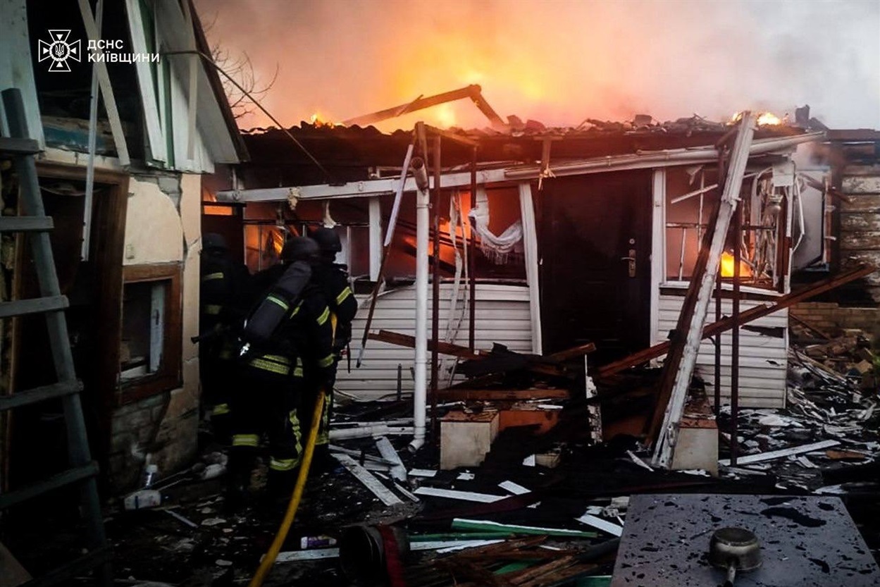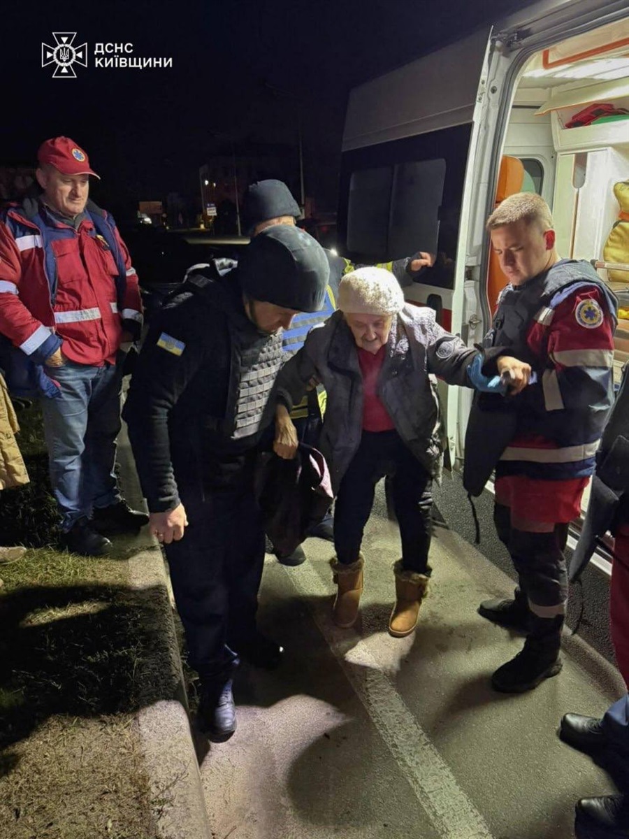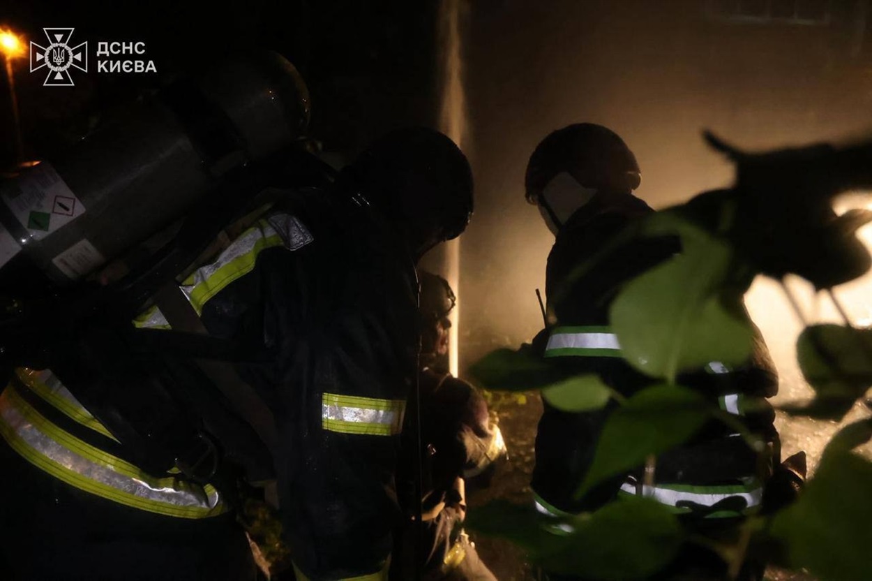 - Дарницький район. У 17-поверхівку влучив дрон, внаслідок чого загорілися поверхи з 11-го по 16-й. З будівлі евакуювали 15 мешканців, зокрема двох дітей. Окрім того, в районі загорілася двоповерхова нежитлова будівля — пожежу вдалося оперативно локалізувати.