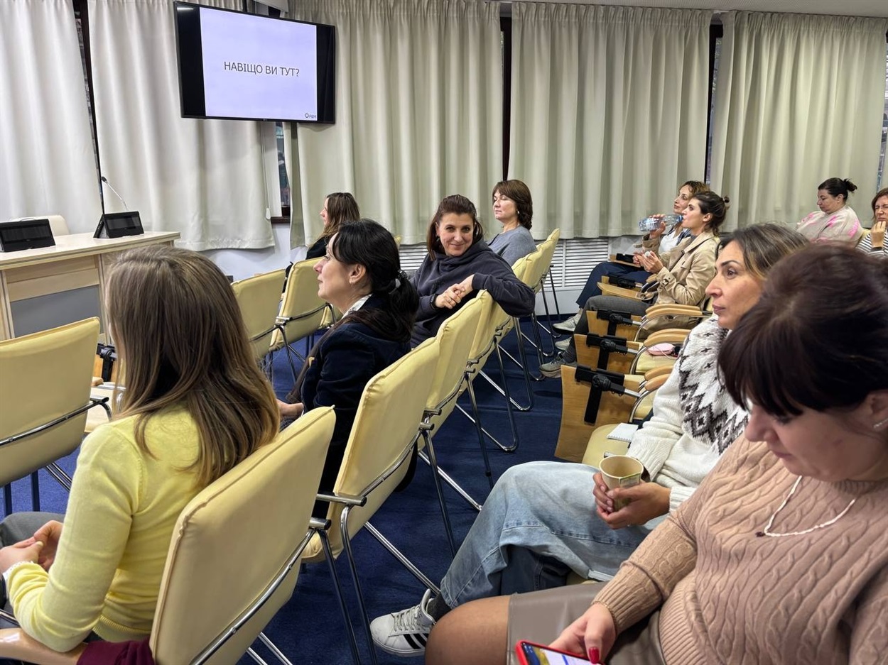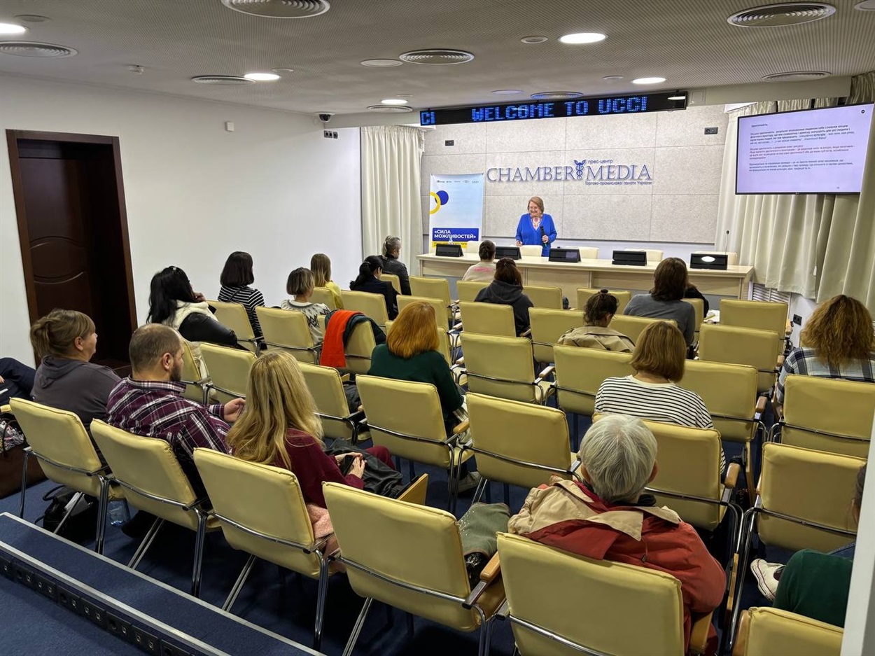 Щоб підбити проміжні результати та обмінятися досвідом, у Києві відбулася офлайн-зустріч для учасників програми. Подія зібрала підприємців із різних куточків Київщини в Торгово-промисловій палаті України. Програма заходу включала два навчальні блоки — про європейські можливості для бізнесу та про ефективну комунікацію й самопрезентацію.