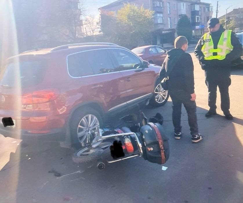Переяслав. Близько 12:20 на вулиці Богдана Хмельницького, поблизу "Універмагу", сталася дорожньо-транспортна пригода. Мешканка села Мирне, 56-річна жінка, керуючи автомобілем Volkswagen Tiguan, під час виїзду з автостоянки не впоралася з керуванням і зіткнулася з мопедом Corrado CR-50, яким керував 60-річний переяславець.