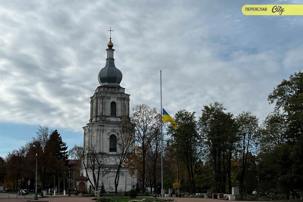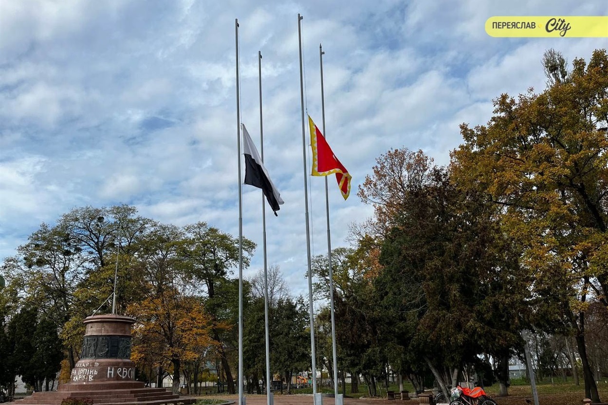 Хоч офіційний день жалоби у Переяславі не запроваджений, прапори на центральній площі приспустили.