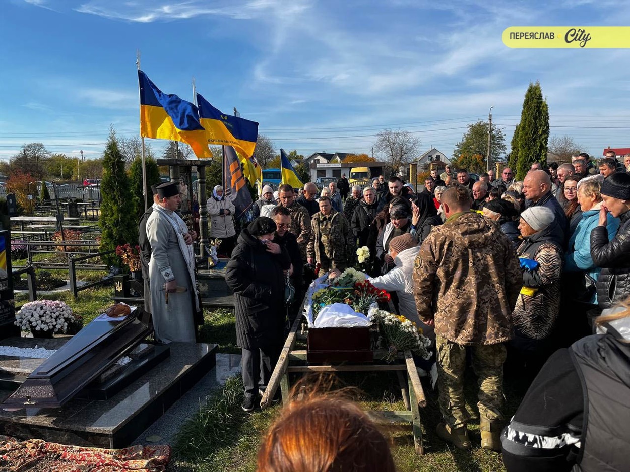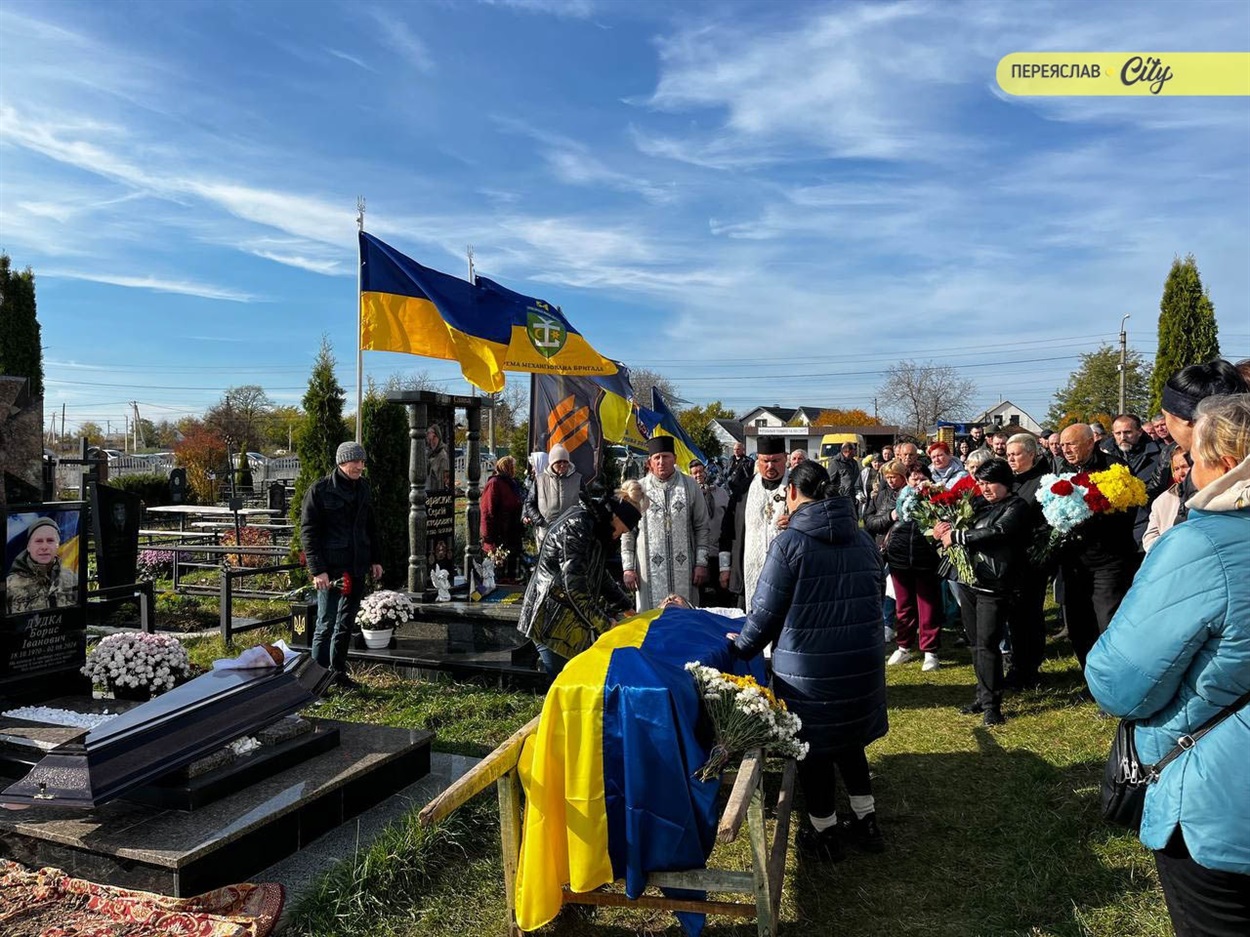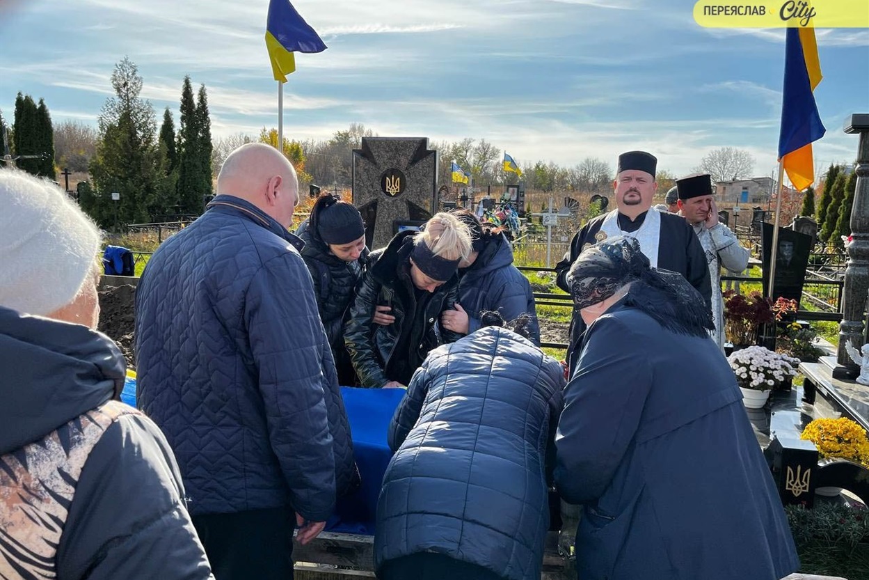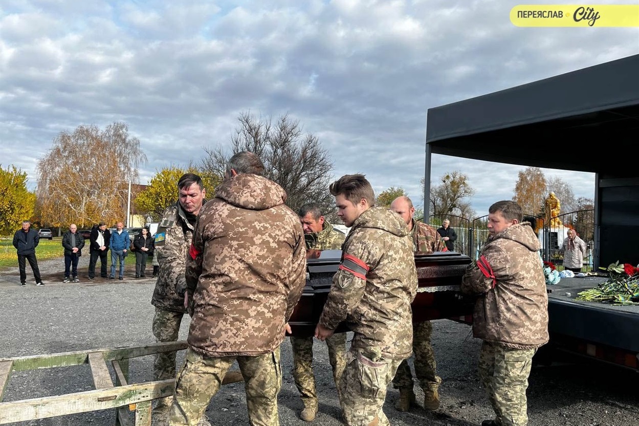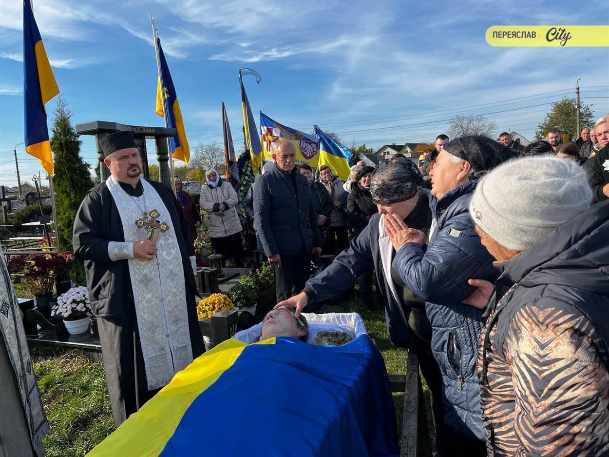 Коли військові з Добровольчого формування територіальної оборони Переяславської громади переносили домовину з катафалка до церкви, присутні схилили голови та опустилися на коліно. У повітрі панувала тиша та скорбота.