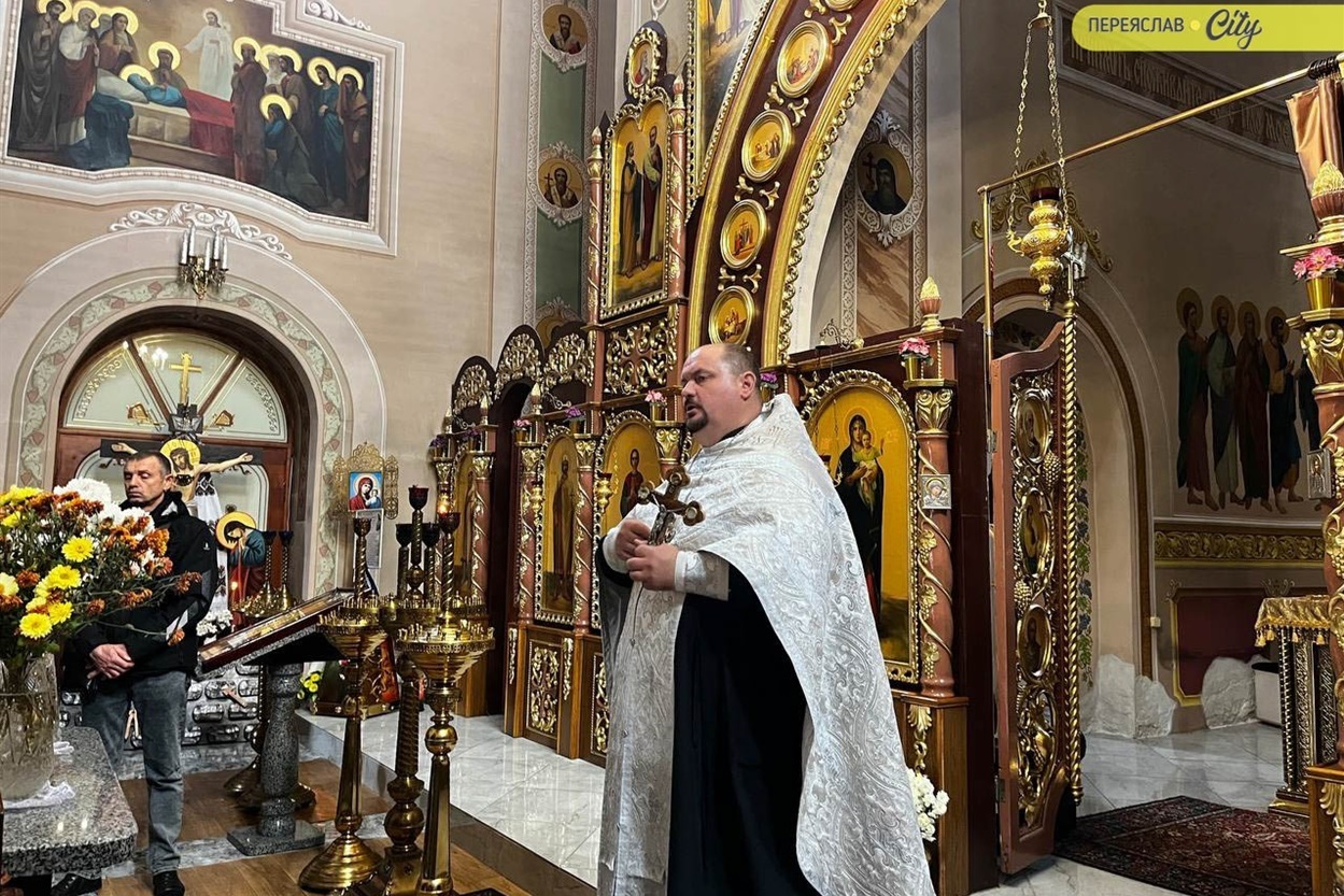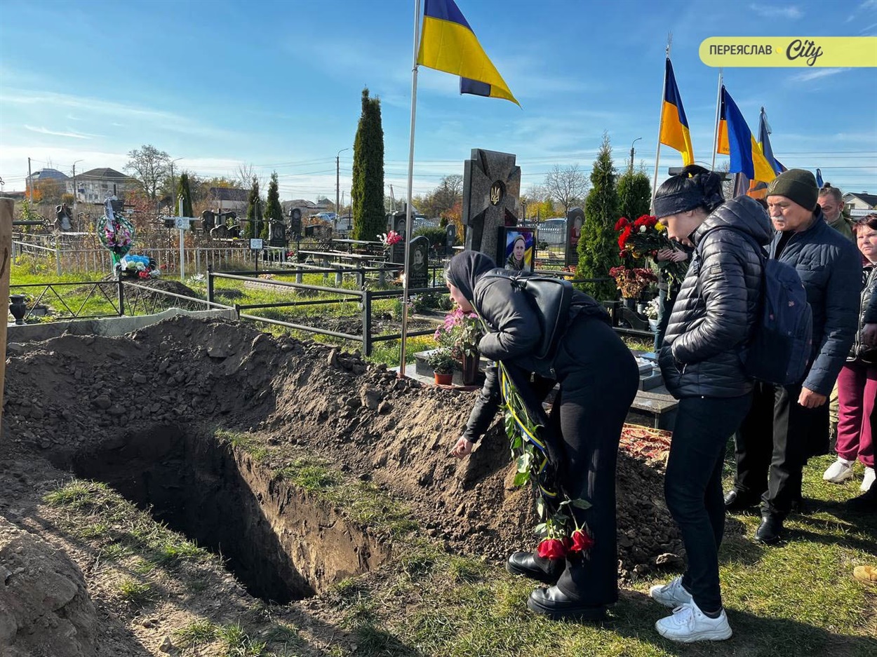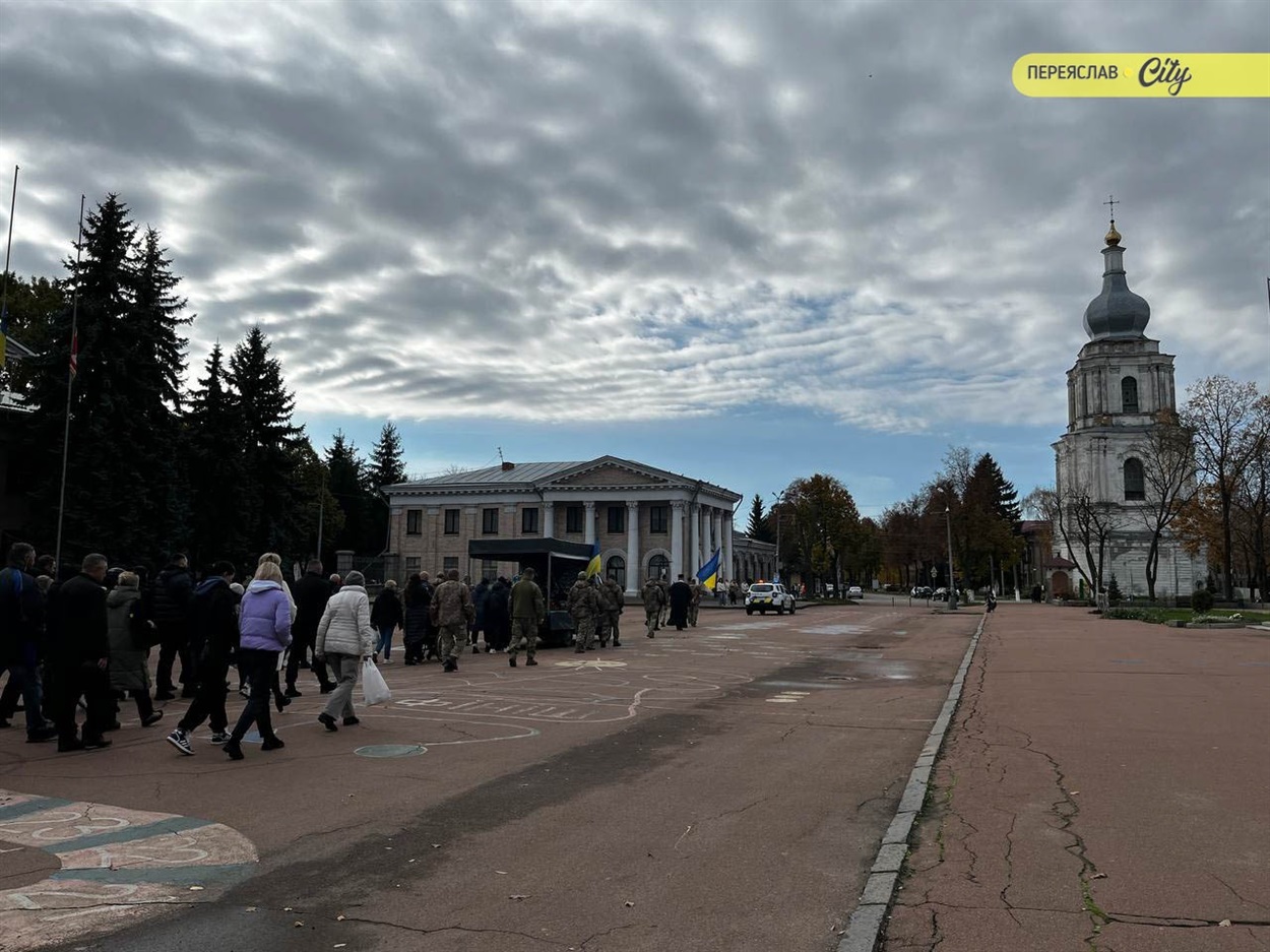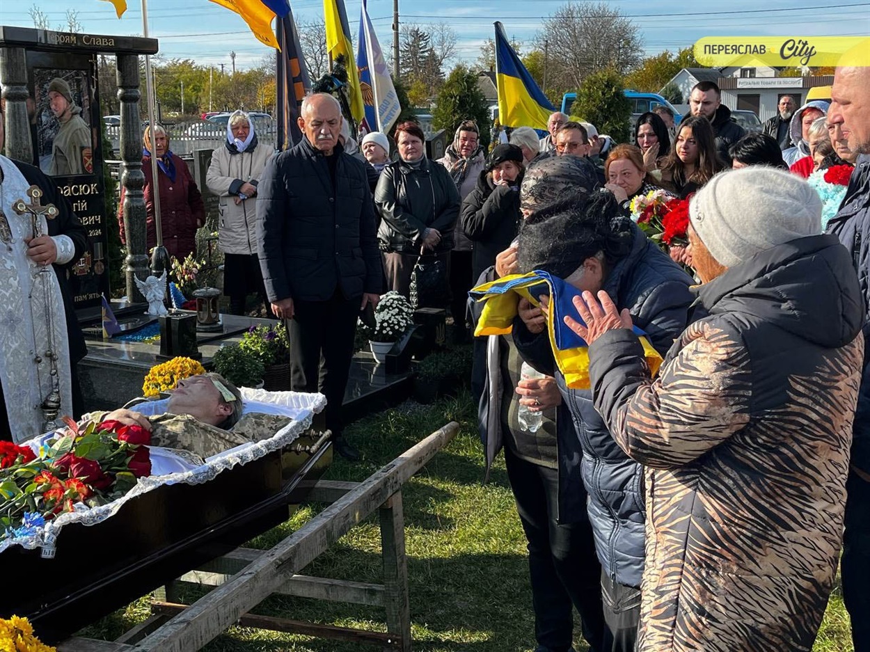 Коли військові з Добровольчого формування територіальної оборони Переяславської громади переносили домовину з катафалка до церкви, присутні схилили голови та опустилися на коліно. У повітрі панувала тиша та скорбота.