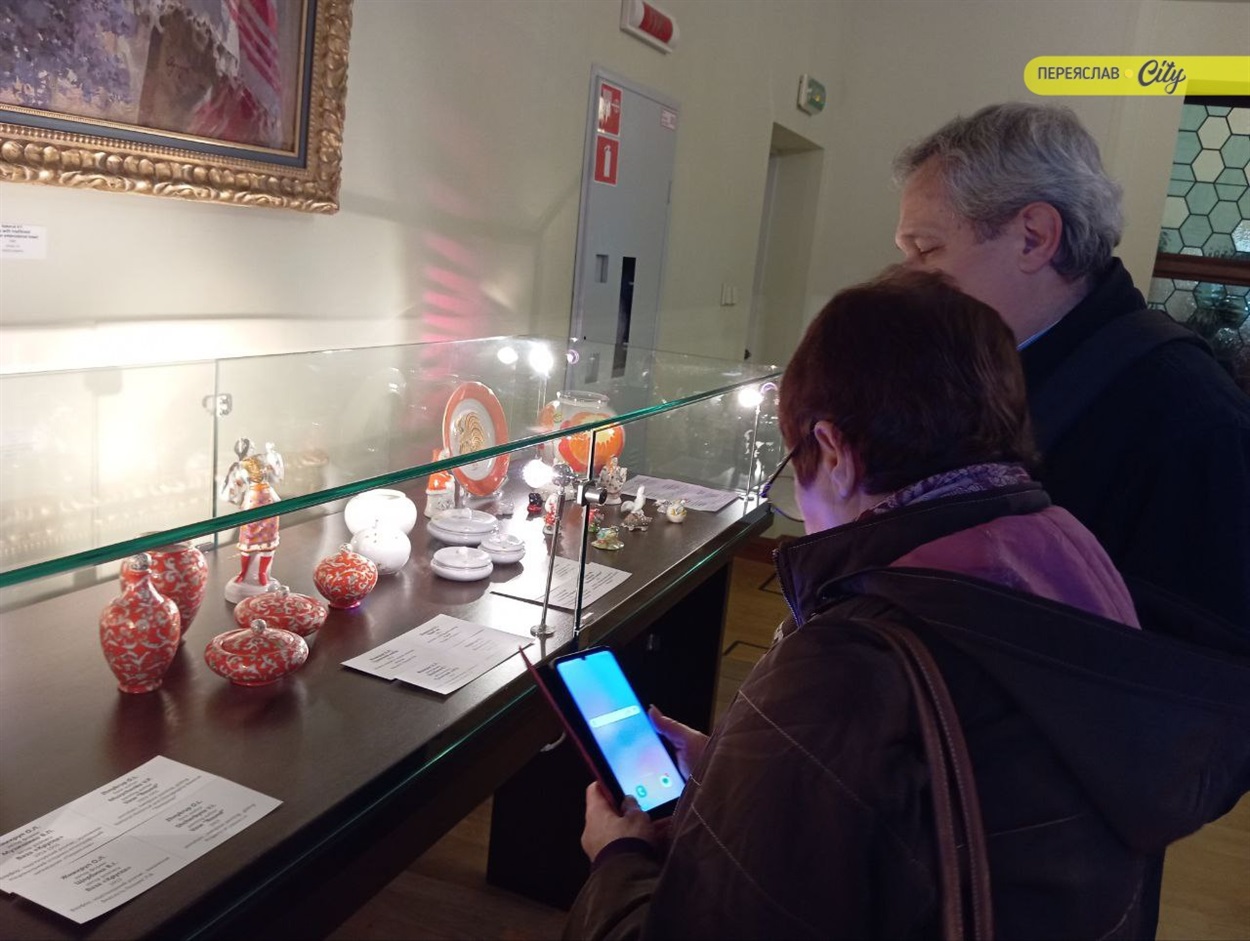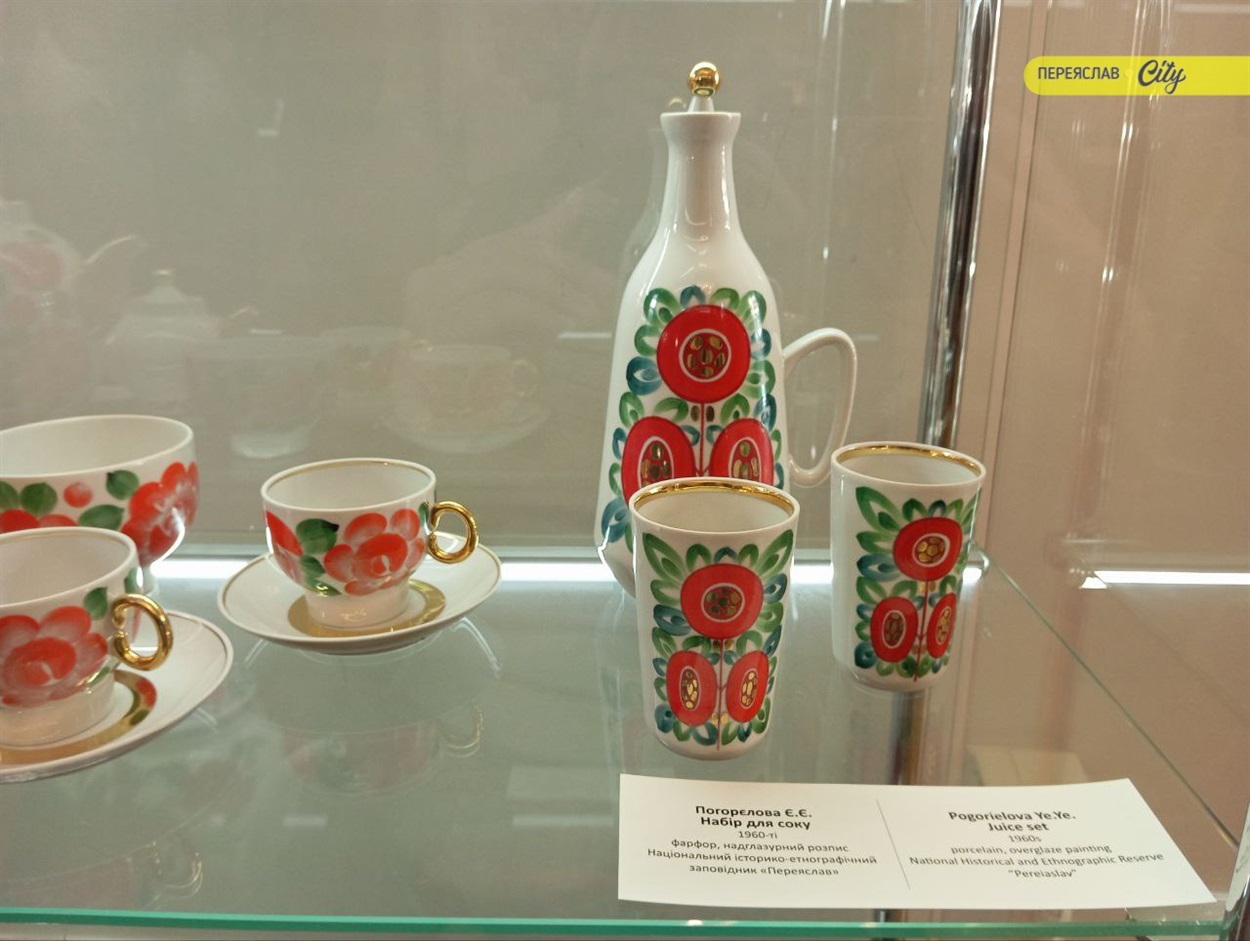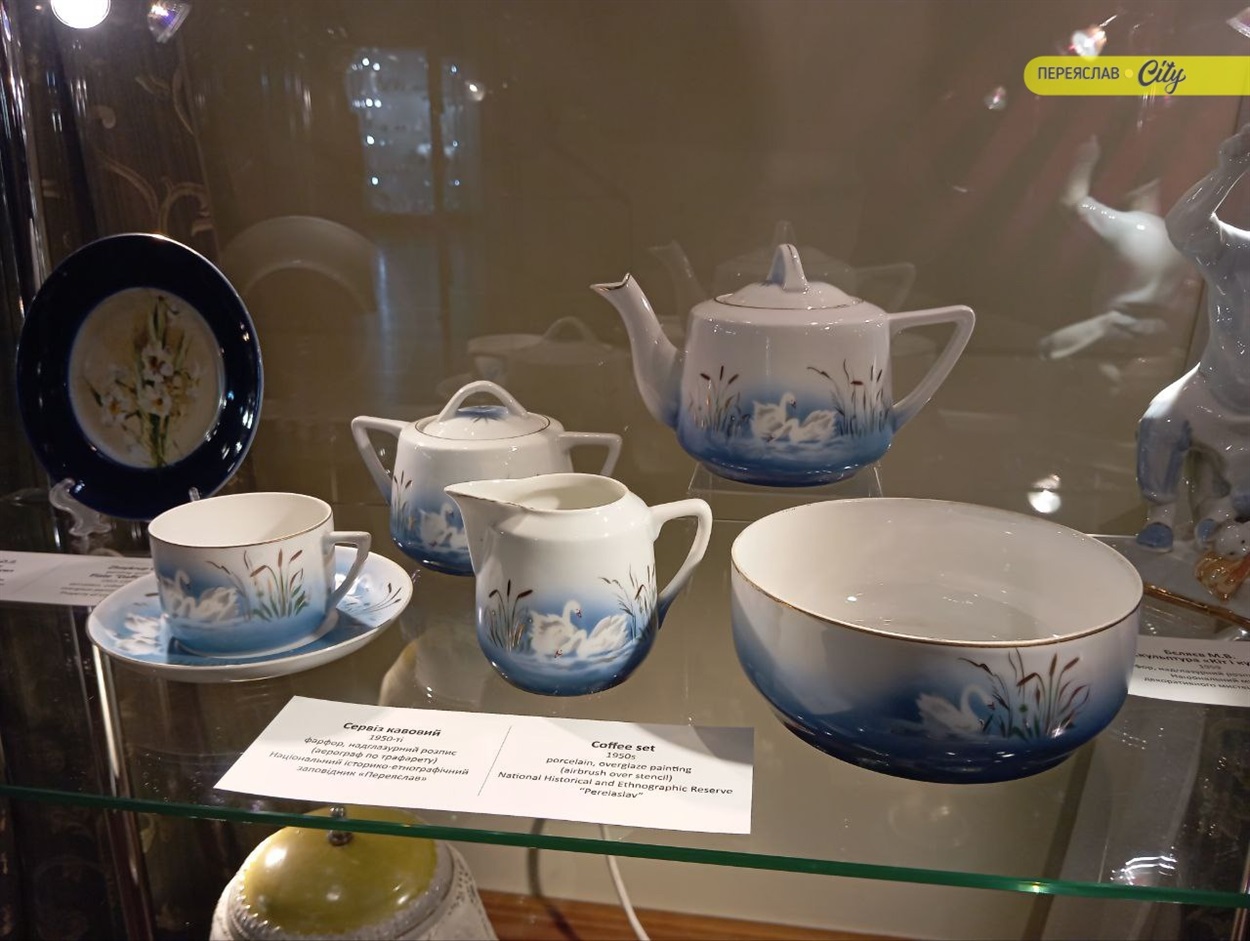 "Ох, які лебеді пливуть по блакитному озеру, дивися, як живі!", – захопливо перемовляються відвідувачі і фотографують чайно-кавовий сервіз, який переяславські музейники привезли на виставку. – "Це з Переяслава! Ну так, у їхніх музеях є справжні скарби. Це ще ж Сікорський назбирав…"