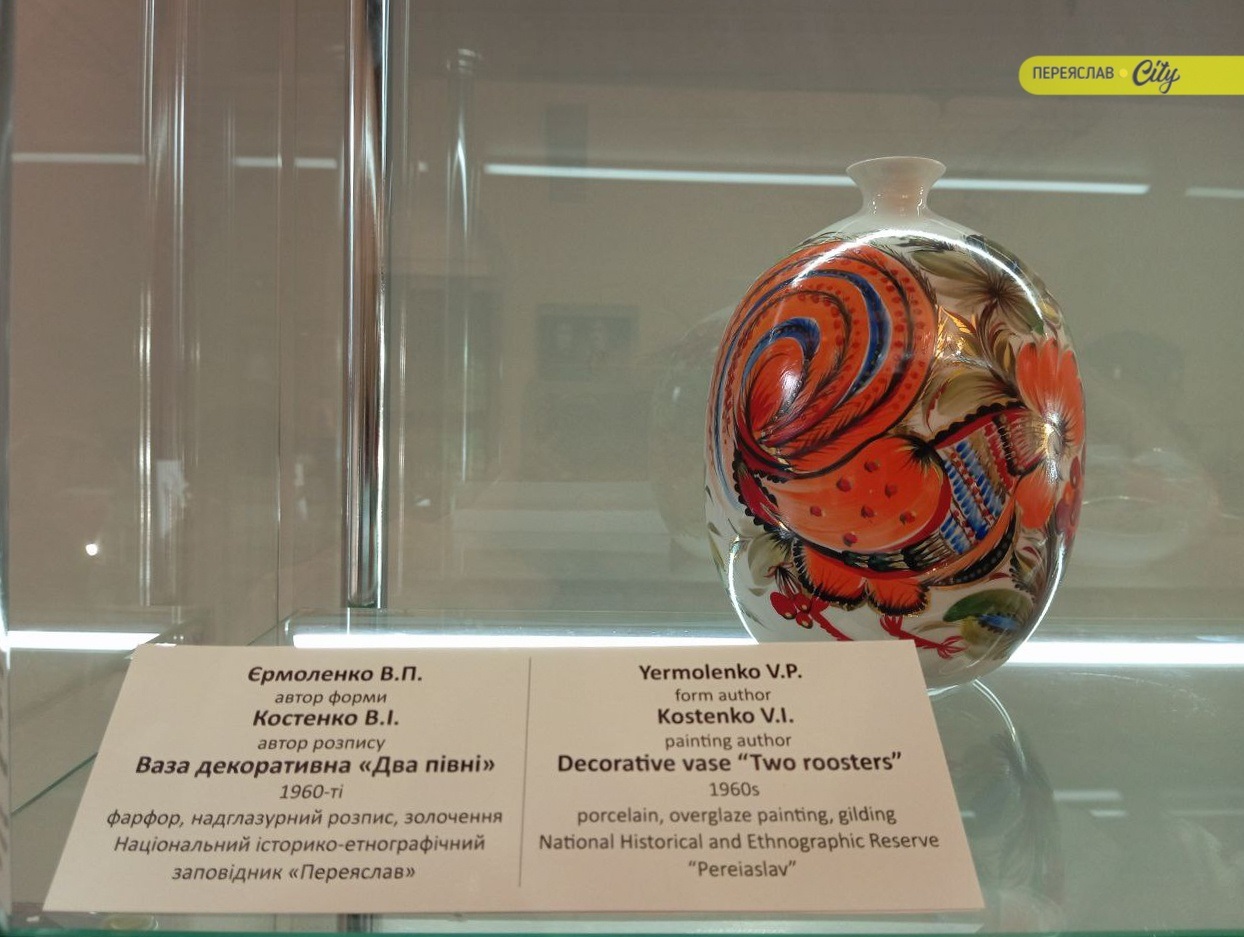 Більшість відвідувачів у захваті від предметів, люб’язно наданих переяславським Заповідником. Вазу «Два півні» всі фотографують і питають, звідки на виставці взялася така краса. Дуже дивуються, що такої немає навіть у приватних колекціонерів, а у вашій фондовій збірці є!