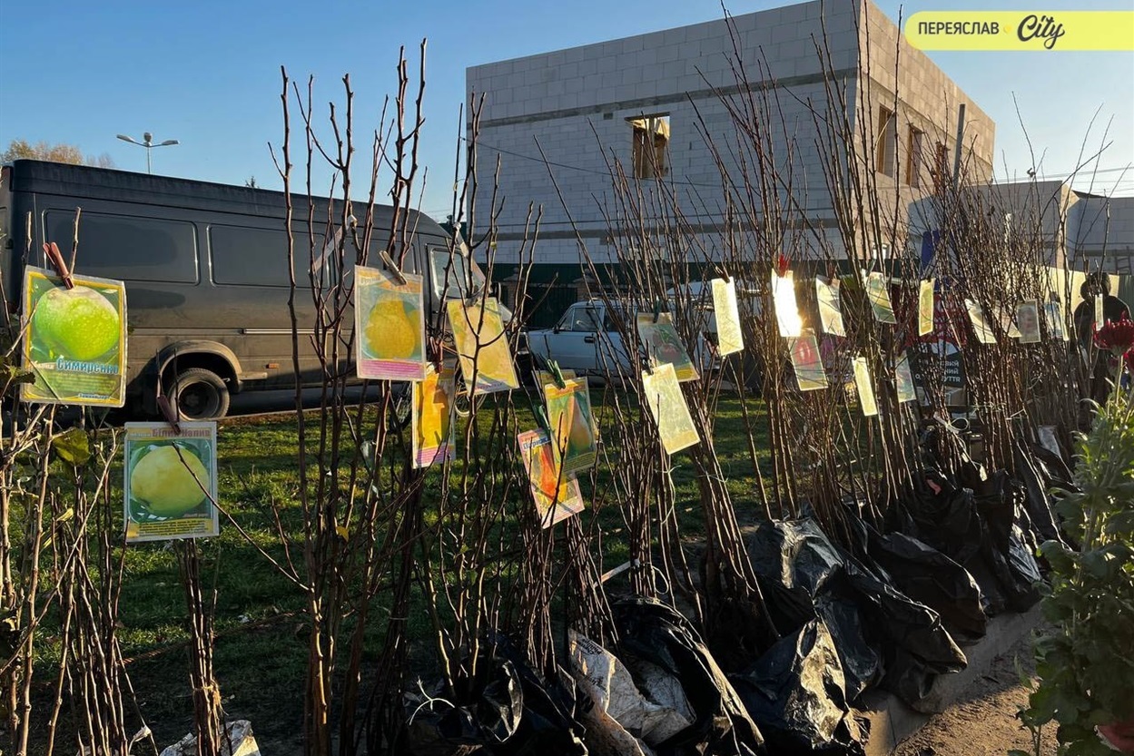 Біля великого "ЕКО" продавали фруктові дерева по 100-200 грн за саджанець з Вінничини. Продавці зізнаються, що всі дерева користуються попитом, але найчастіше зараз беруть яблуні, сливи та груші.