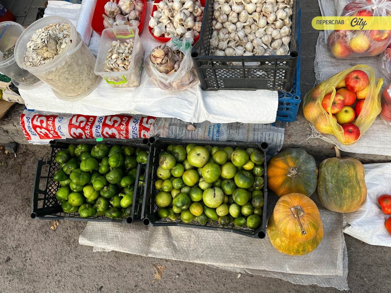 На прилавках було багато гарбузів – їх продавали по 8-10 грн за кілограм. Насіння з них теж користувалося попитом: сире — по 25 грн, смажене – по 30 грн за склянку.