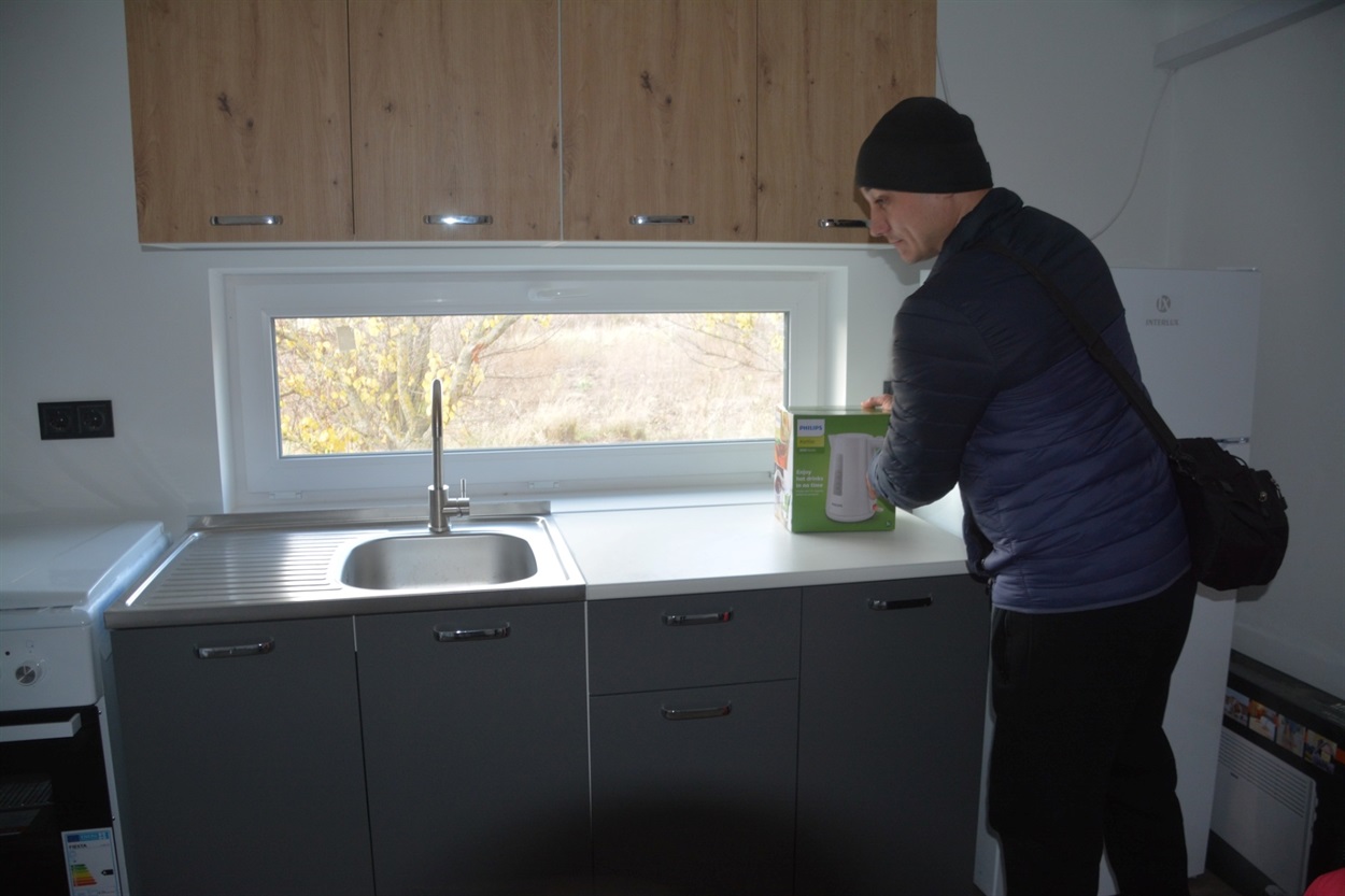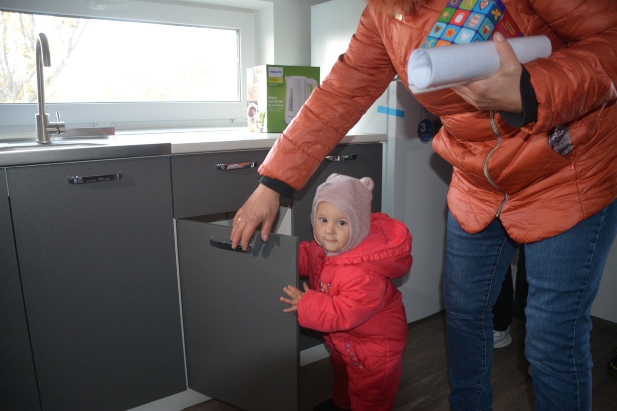 Того ж дня делегація відвідала родину, яка отримала будинок раніше. Вони вже облаштували територію: встановили огорожу, твердопаливний котел, пандус на вхід, облагородили терасу, висадили дерева та квіти. На підвіконні стоїть десяток чубуків винограду, які родина привезла з Маріуполя.