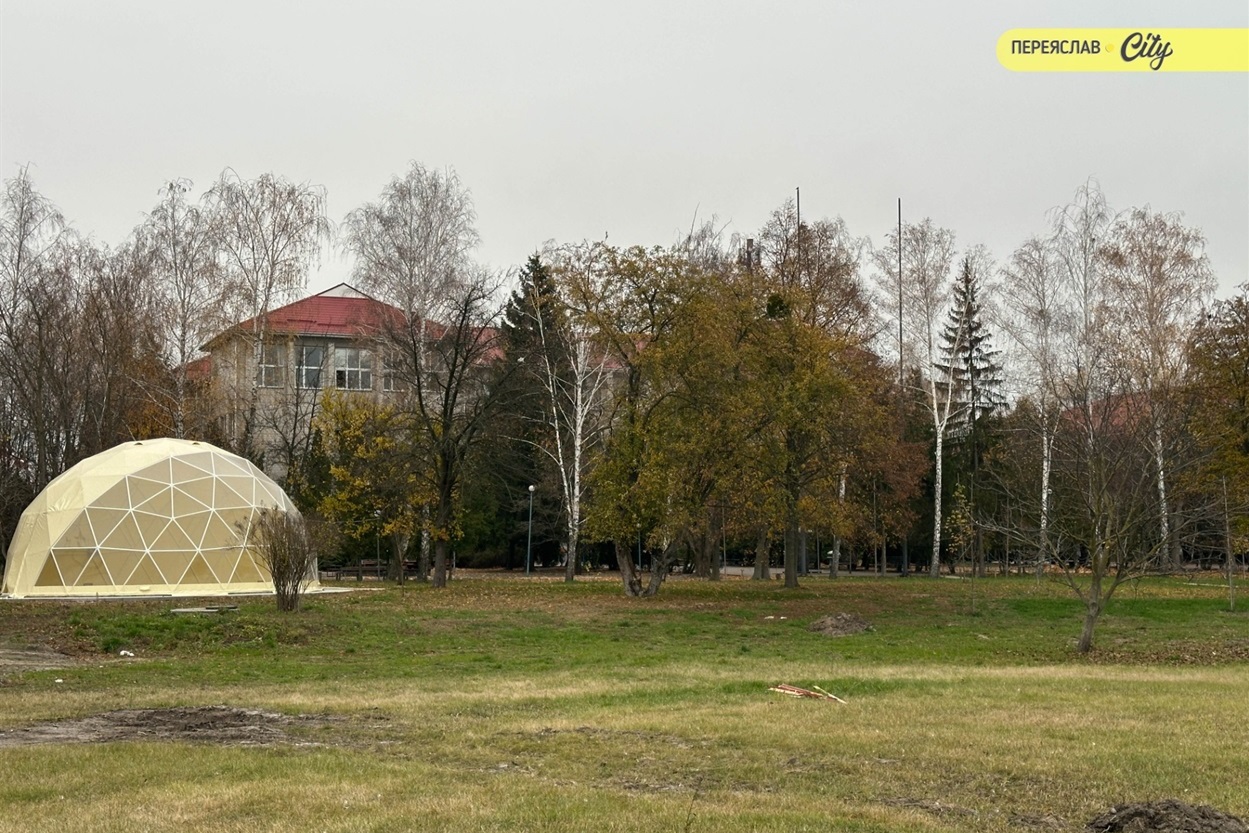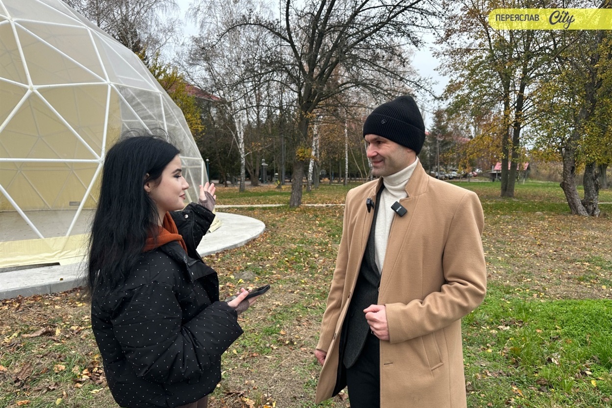 – Купол – це простір, що своїми формою та кольором символізує внутрішньоутробне середовище, створює відчуття спокою, надійності, – каже Віталій Вікторович. – Через прозорі стіни відкривається гарний ближній краєвид природи, у перспективі видніється історичний центр Переяслава з куполами храмів. І коли тут викладач розповідає про історію чи культуру, студенти водночас споглядають ці пам’ятки.