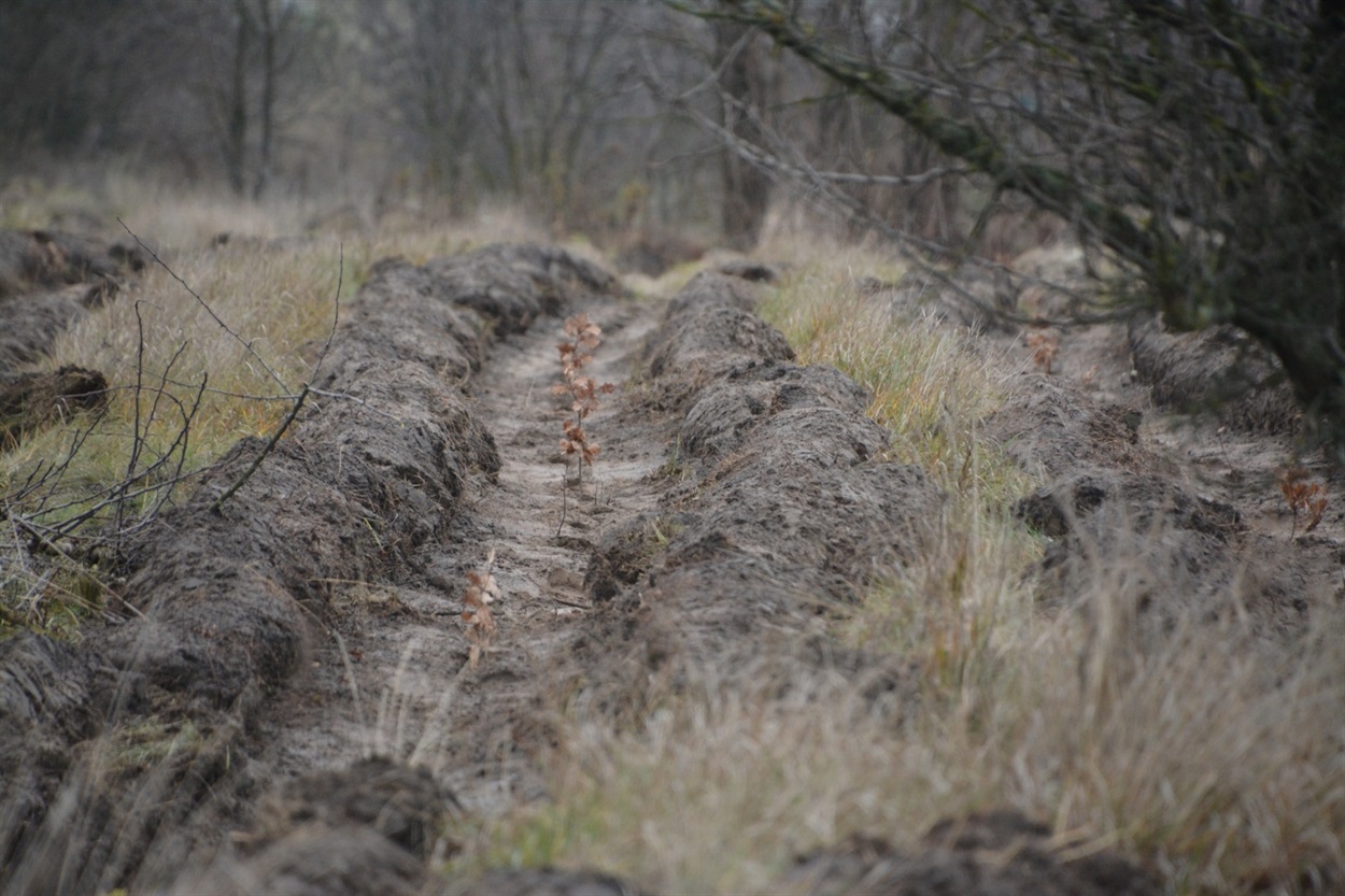 На поораних рядах під посадку дерев також видно сліди кабанів і кіз. Нова лісосмуга відмежує заповідні території, тож допоможе захистити їх від руйнування.