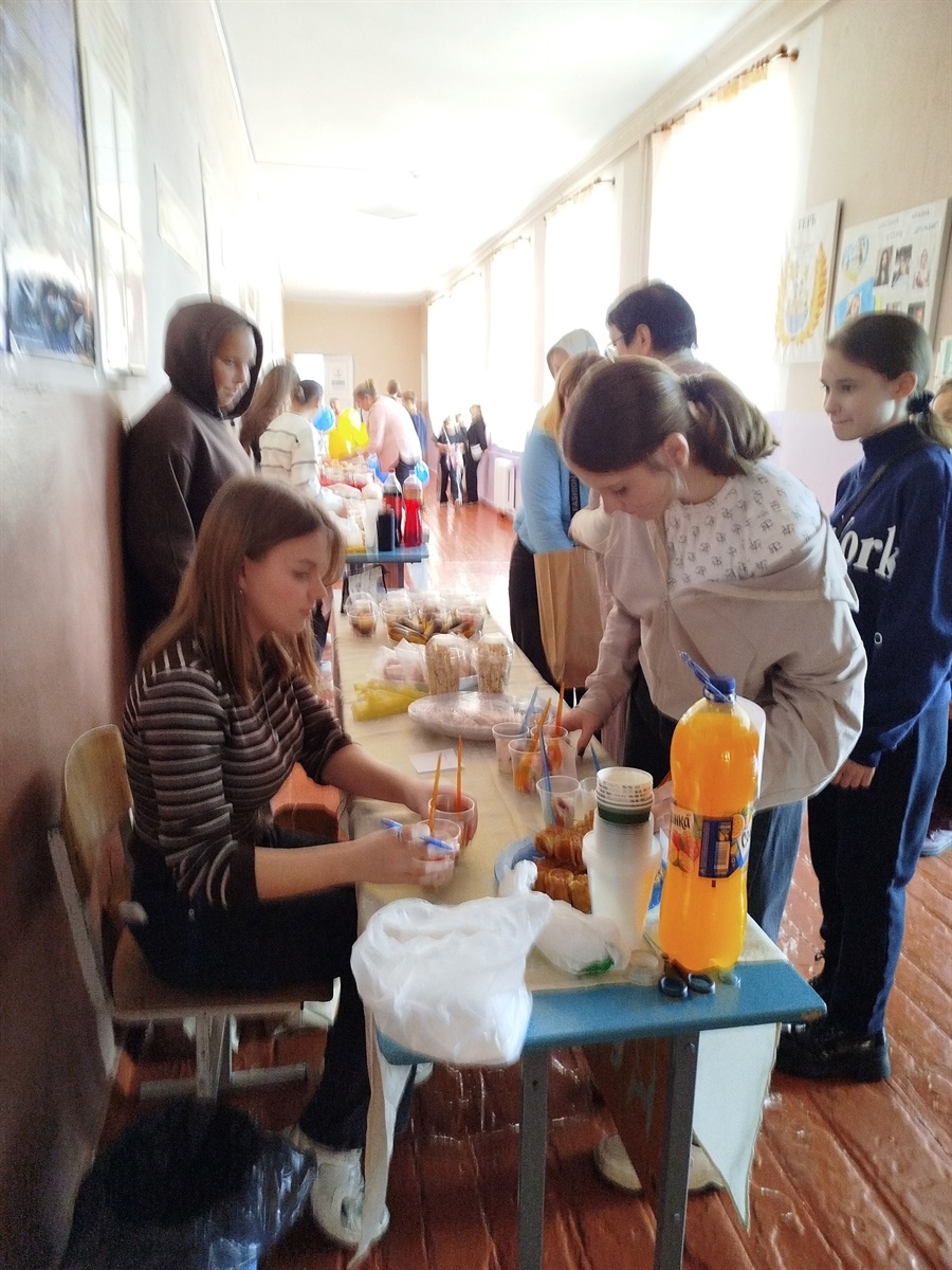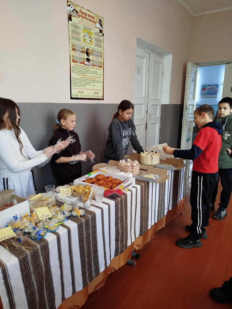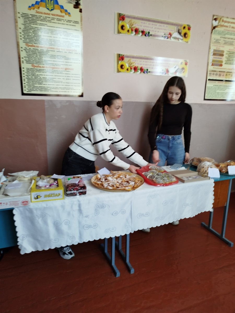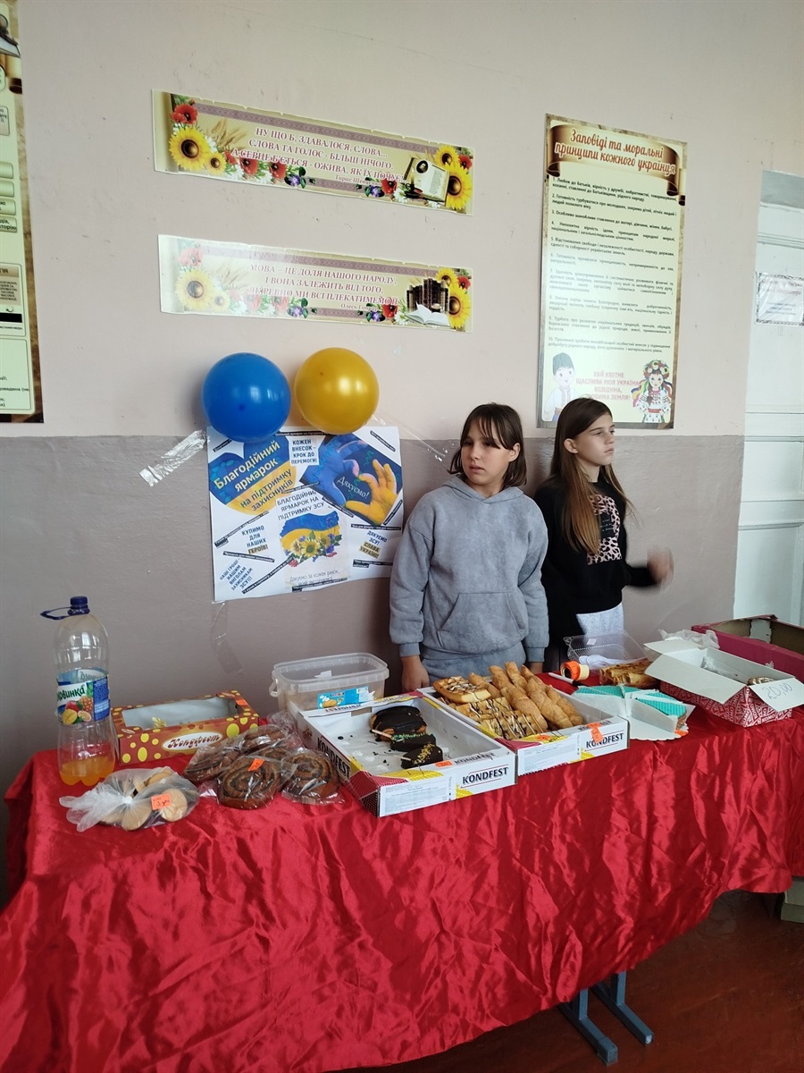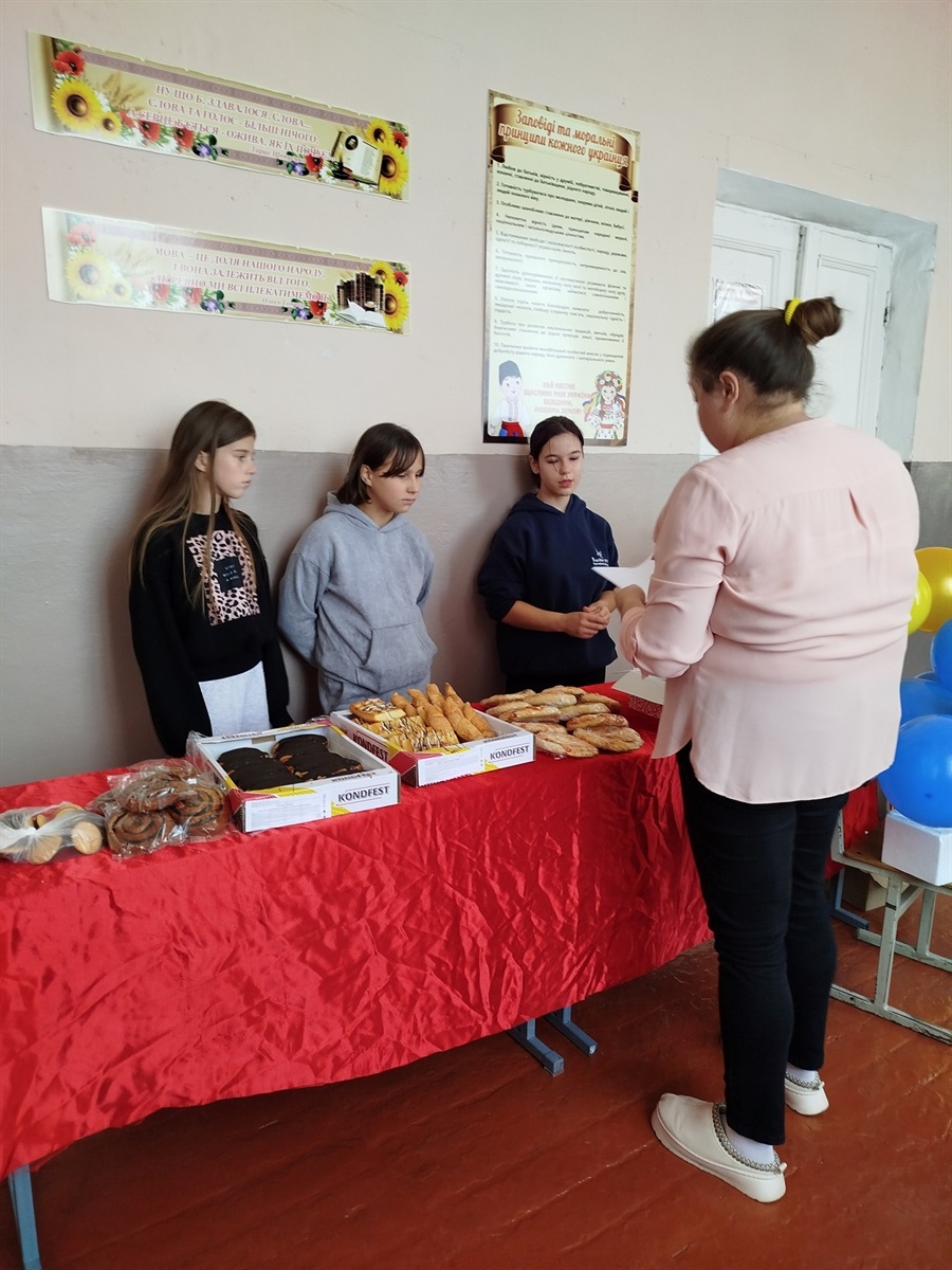 До благодійного ярмарку долучилися учні 1-9 класів гімназії, працівники закладу та жителі села.