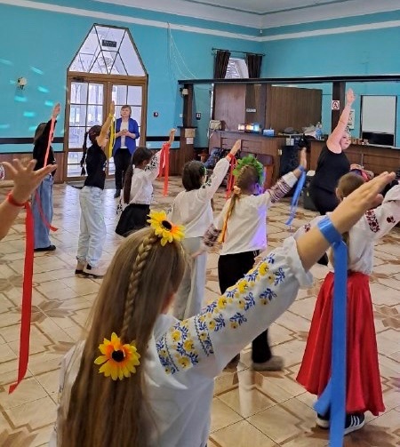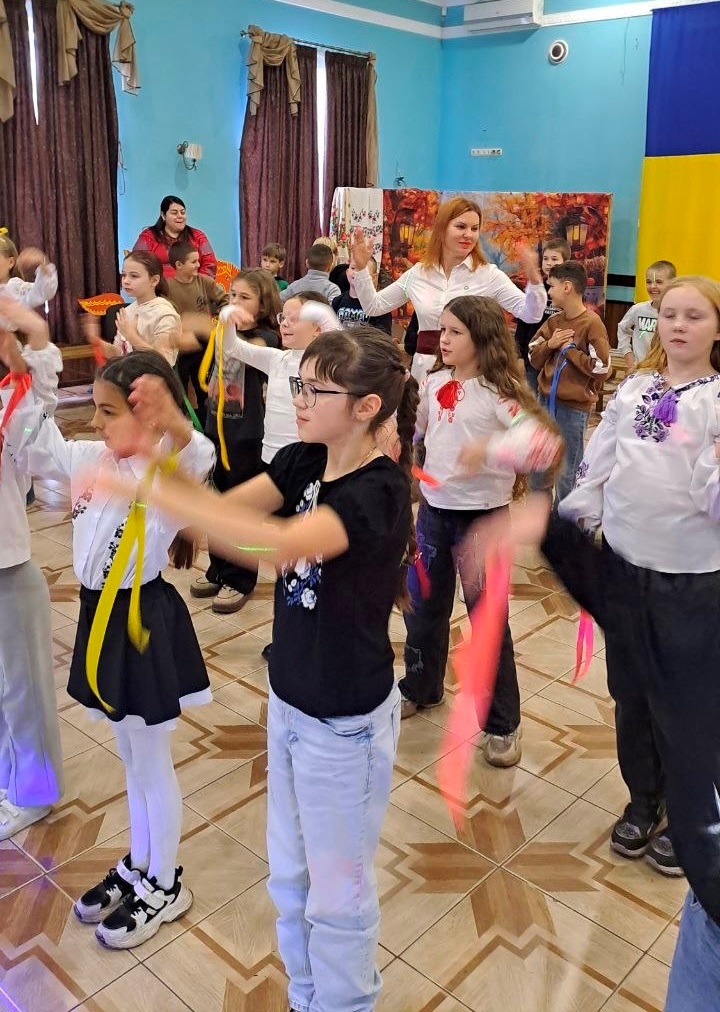 Ми дуже вдячні Анні Чирко (Танані), яка провела для діток майстер-клас з українського танцю. Під її керівництвом дівчатка танцювали «колупалочку», а хлопці – гопак, змагалися, хто кого перетанцює. Вона пов’язала дітям на руки кольорові стрічки, під час руху це виглядало дуже гарно і колоритно.