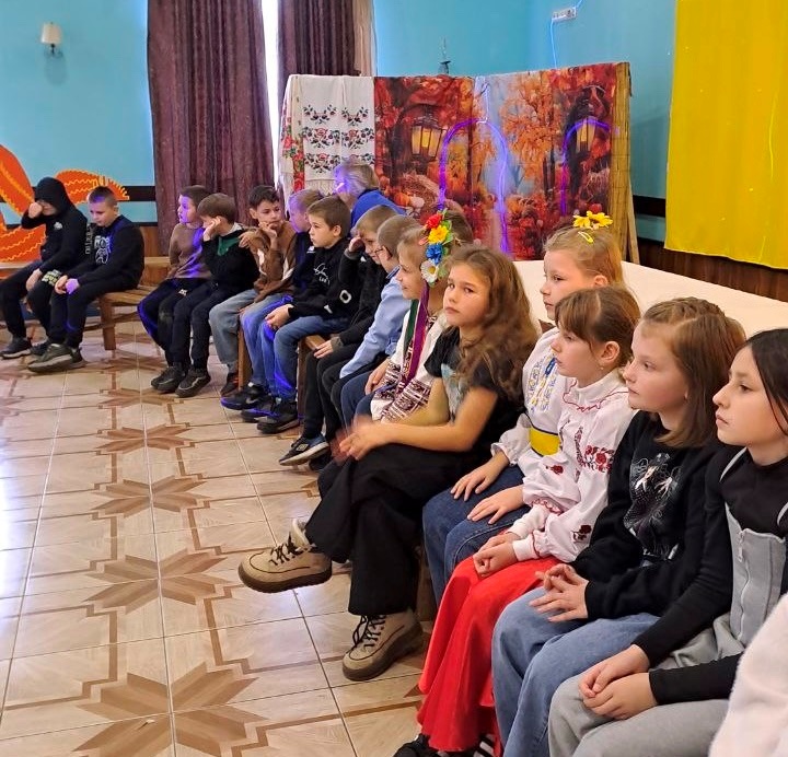 До нас завітали учні 4 класу гімназії №2 з учителькою Аллою Лазаренко. Ми розповіли про традиції вечорниць. Діти могли пограти на народних музичних інструментах: бубон, деркач, барабан, рубель, сопілки, ложки та дзвоник. Також співали пісню «Ой у лузі червона калина». Я за освітою вчителька музики, то буду з дітьми займатися і вивчимо з ними інші пісні.