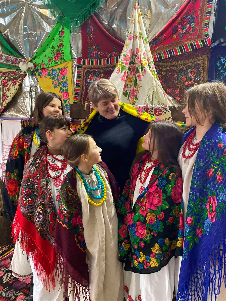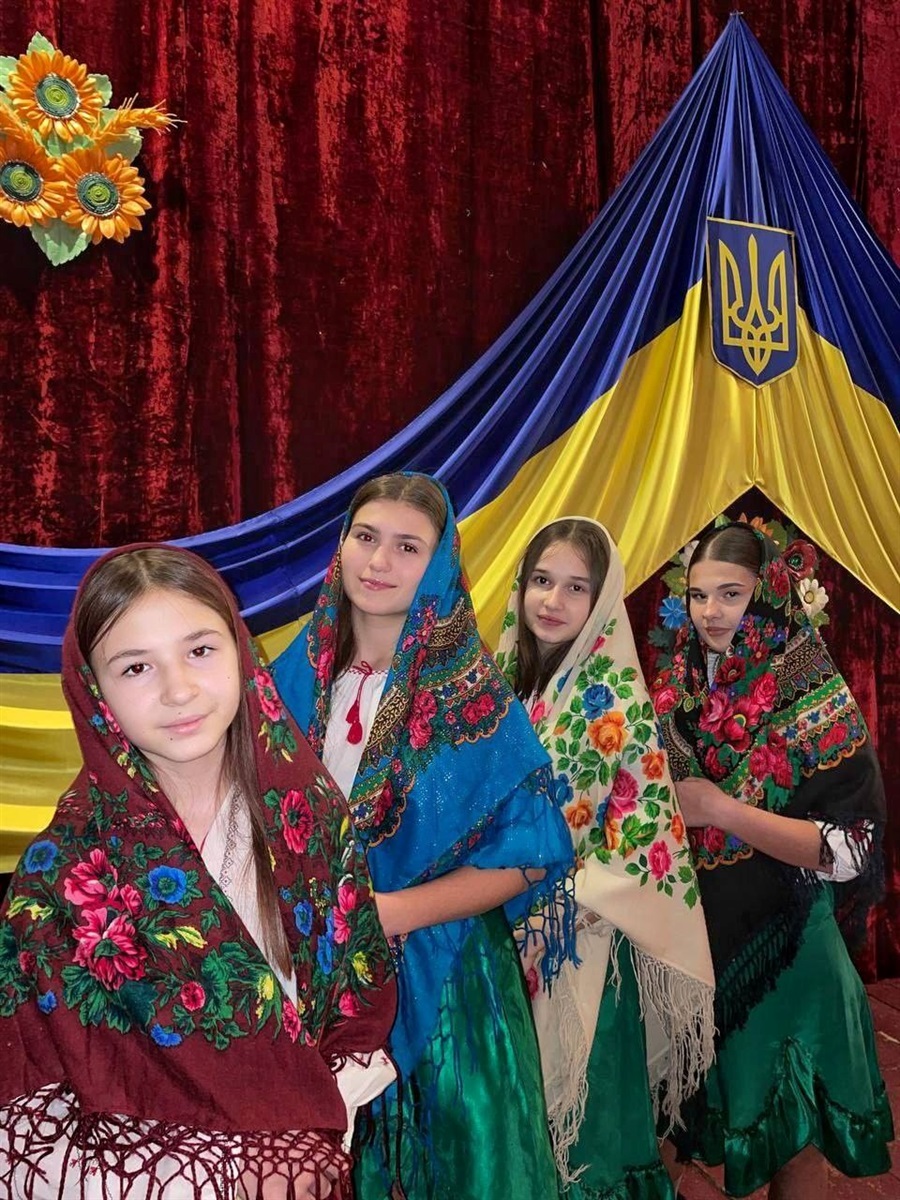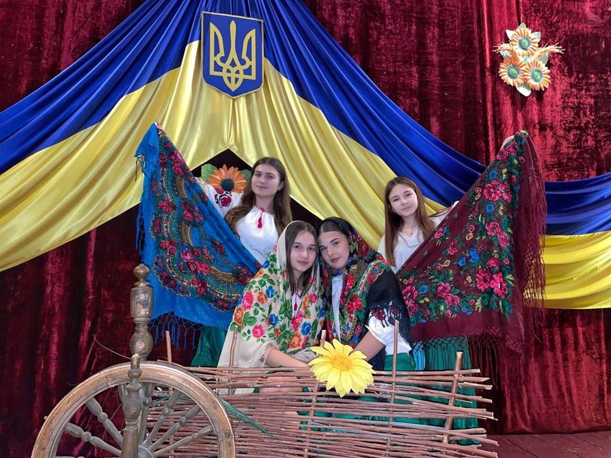Дівчатка любительського об'єднання "Творчі", Вовчківського сільського будинку культури, з цікавістю приміряли на себе барвисті хустки