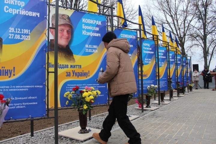 Також на Алеї Героїв розмістили окремий спільний банер із сімома іменами захисників і захисниці України, які померли зокрема через наслідки російсько-української війни:
