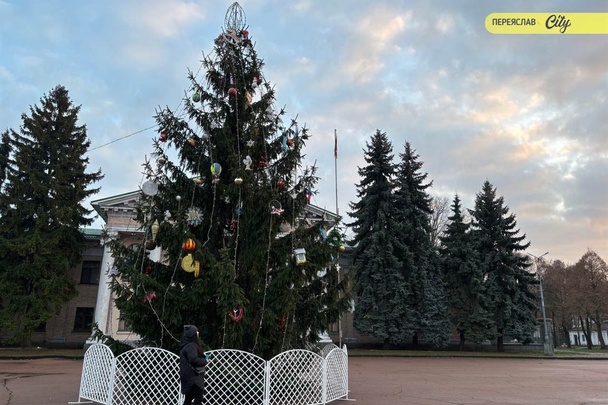 З 8 грудня на центральній площі Переяслава засяяла головна ялинка міста. Її встановили тут 3 грудня – уперше від початку повномасштабної війни. Новорічну красуню місту подарувало подружжя Орлів – 62-річна Олена та 68-річний Микола, цю історію розповідає Переяслав.City.