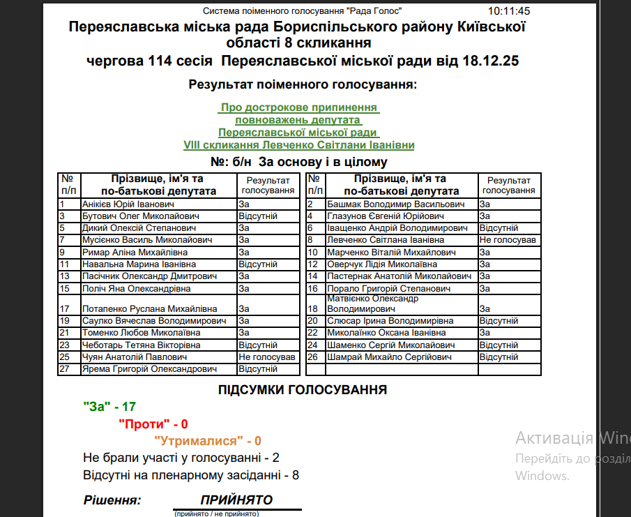 Сьогодні, 18 грудня, сесія Переяславської міськради позначилася подією, від якої навіть депутати були приголомшені. Депутатка Світлана ЛЕВЧЕНКО з фракції "Слуга народу" оголосила, що достроково складає повноваження і попросила колег підтримати її заяву, повідомляє Переяслав.City.