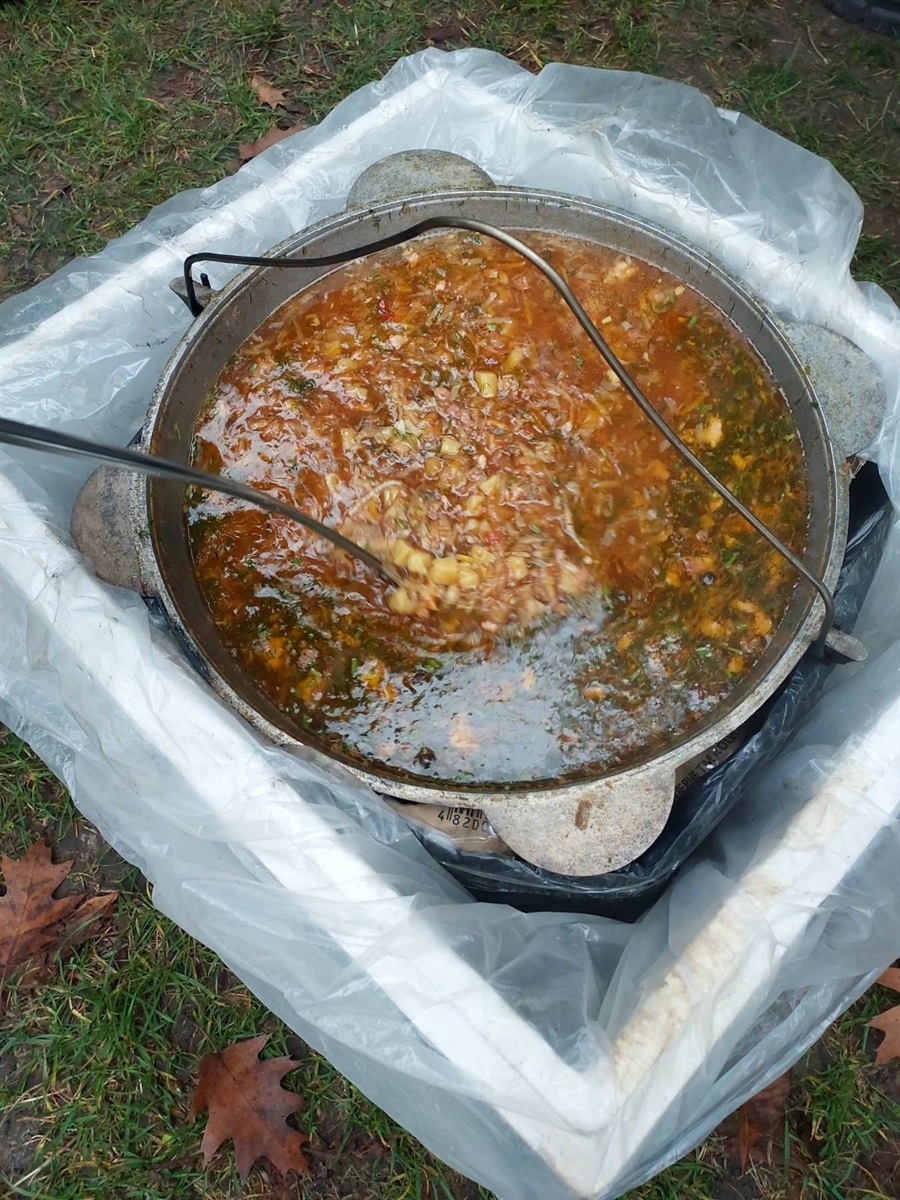 – У нас сьогодні, як і завжди, багато смачних страв, – каже Ольга Дрига, керівниця ГО «Нескорені». – Ось борщ «Переяславський смачний» із сухих інгредієнтів, той, який готуємо на фронт. Ми зварили його на вогнищі і пропонуємо гостям заходу. Також приготували капусняк з домашньою курочкою, яку людина віддала нам безкоштовно. Це до речі, «хіт» нашого ярмарку! Ми обов’язково дізнаємося її прізвище, щоб подякувати. Є й голубці, сирники, пиріжки з вишнями, капустою, гречкою, різноманітні салати, піца, пастила, торти «Нополеон», «Медовик», Спартак», різдвяні пряники, багато різноманітних десертів.
