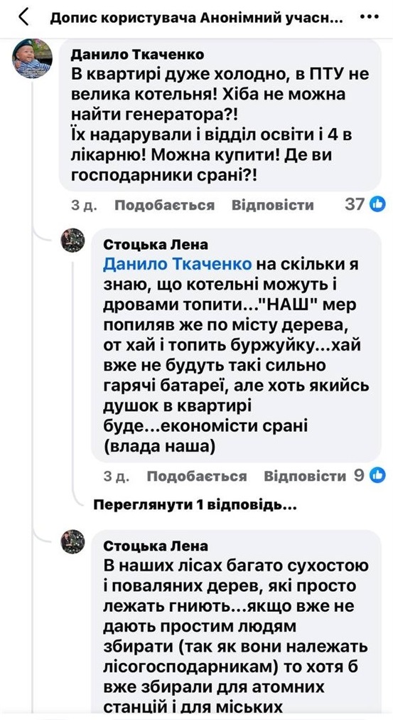 Питання забезпечення котелень резервними джерелами живлення також неодноразово порушували жителі Переяслава у місцевих фейсбук-групах. У дописах і обговореннях містяни звертають увагу на відсутність генераторів на окремих котельнях та пов’язують це з перебоями теплопостачання під час відключень електроенергії.