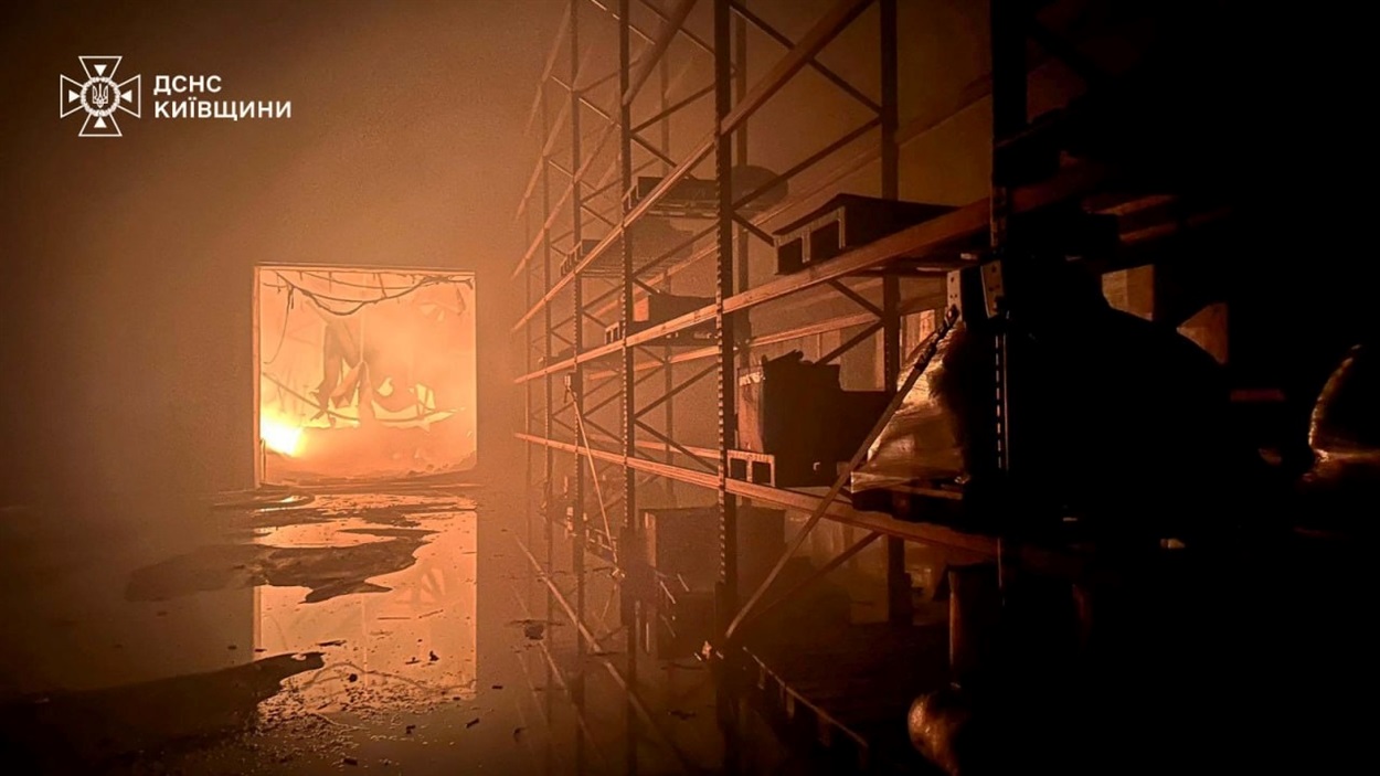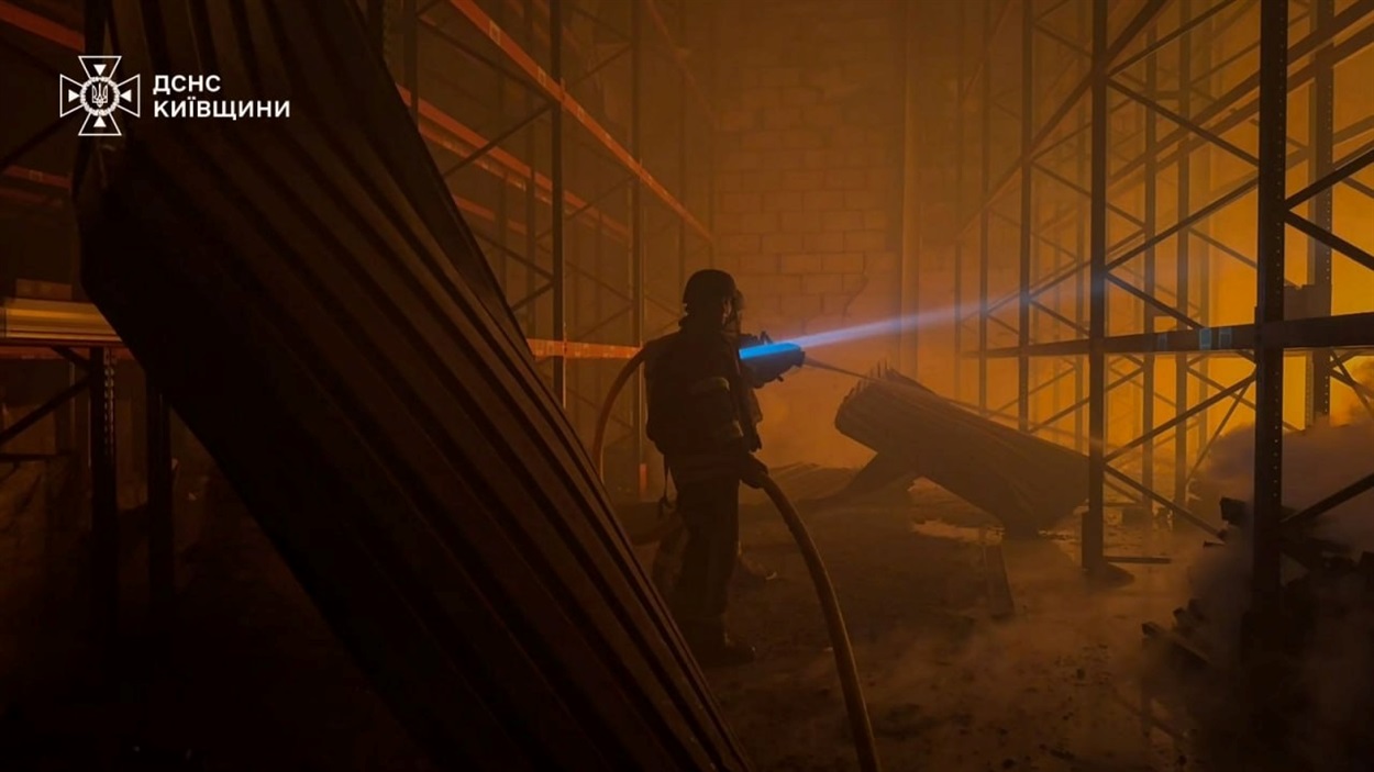 У Бориспільському районі зазнали ушкоджень складські приміщення й логістичний центр одного з підприємств. У ДСНС України уточнили, що атаковано складський комплекс у Яготині, гасіння пожежі триває.