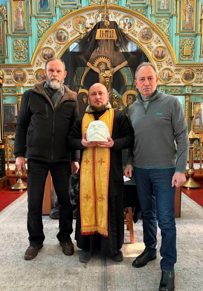 Копію маски Микола Томенко вже передав настоятелю храму отцю Софронію, і разом із науковцем НІЕЗ «Переяслав» Олександром Колибенком обговорили можливе місце її розміщення в храмі.