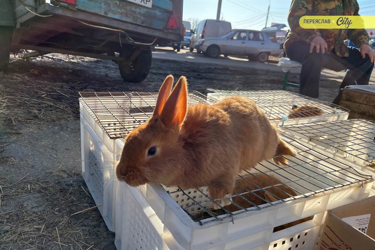 На базарі продавали кроликів. По 500 грн пропонували породи "Потавське Срібло", "Сірий Великан" та "Каліфорнія" віком 3,5-4 місяці. Маленьких кроликів віком близько місяця й тижня продавали по 250 грн, мішаних порід.