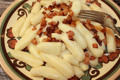 - Наріжте невеликими шматочками печериці. Додайте гриби до сковороди та обсмажте разом з овочами.